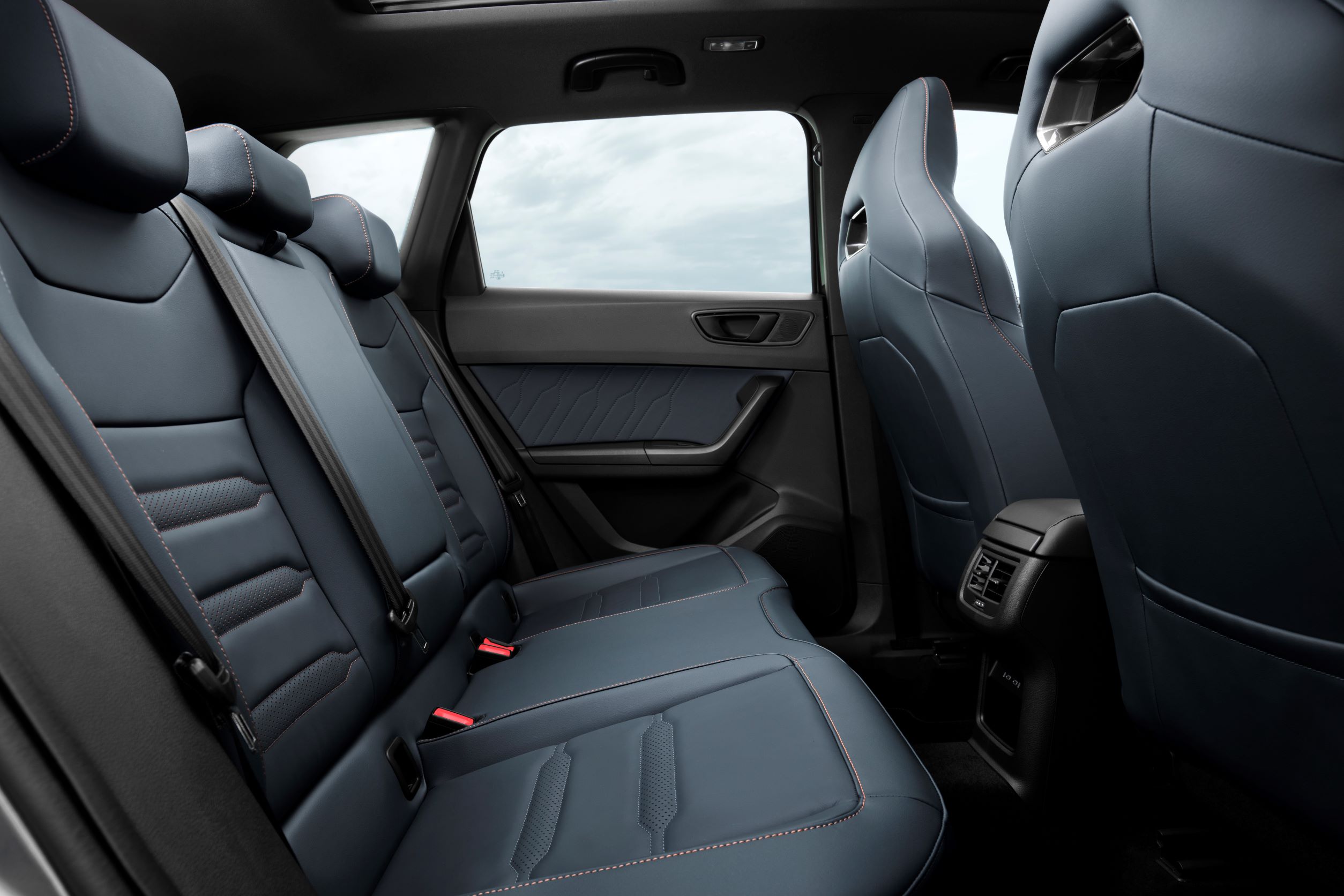 Von der Seite fallen die im sportiven Schwarz gehaltenen Spiegelkappen, Fensterrahmen und die schwarze Dachreling sowie die 19 Zoll großen Leichtmetallräder ins Auge. Das Fahrzeugheck wirkt durch den Diffusor und die vier verchromten Auspuffendrohre definierter und griffiger als beim herkömmlichen Ateca.