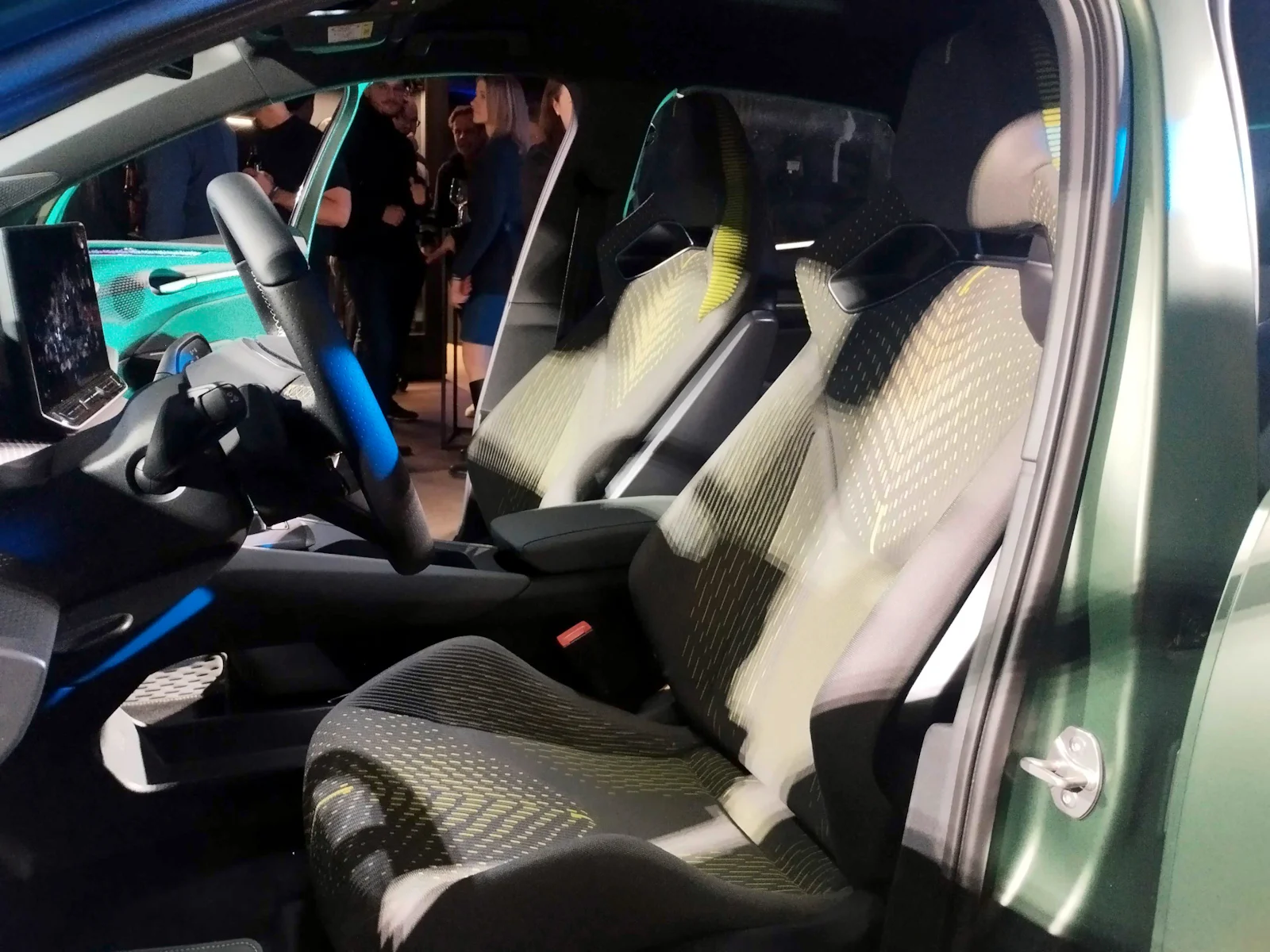 Der sportliche Auftrifft wird im Innenraum ebenfalls großgeschrieben. Dass der Raval mehr „Show“ als die klassischen VW-Modelle bietet, wird durch die extravagante Lichtinszenierung und Projektionen in den Türen unterstrichen sowie durch ansprechend gestaltete Sitzbezüge.