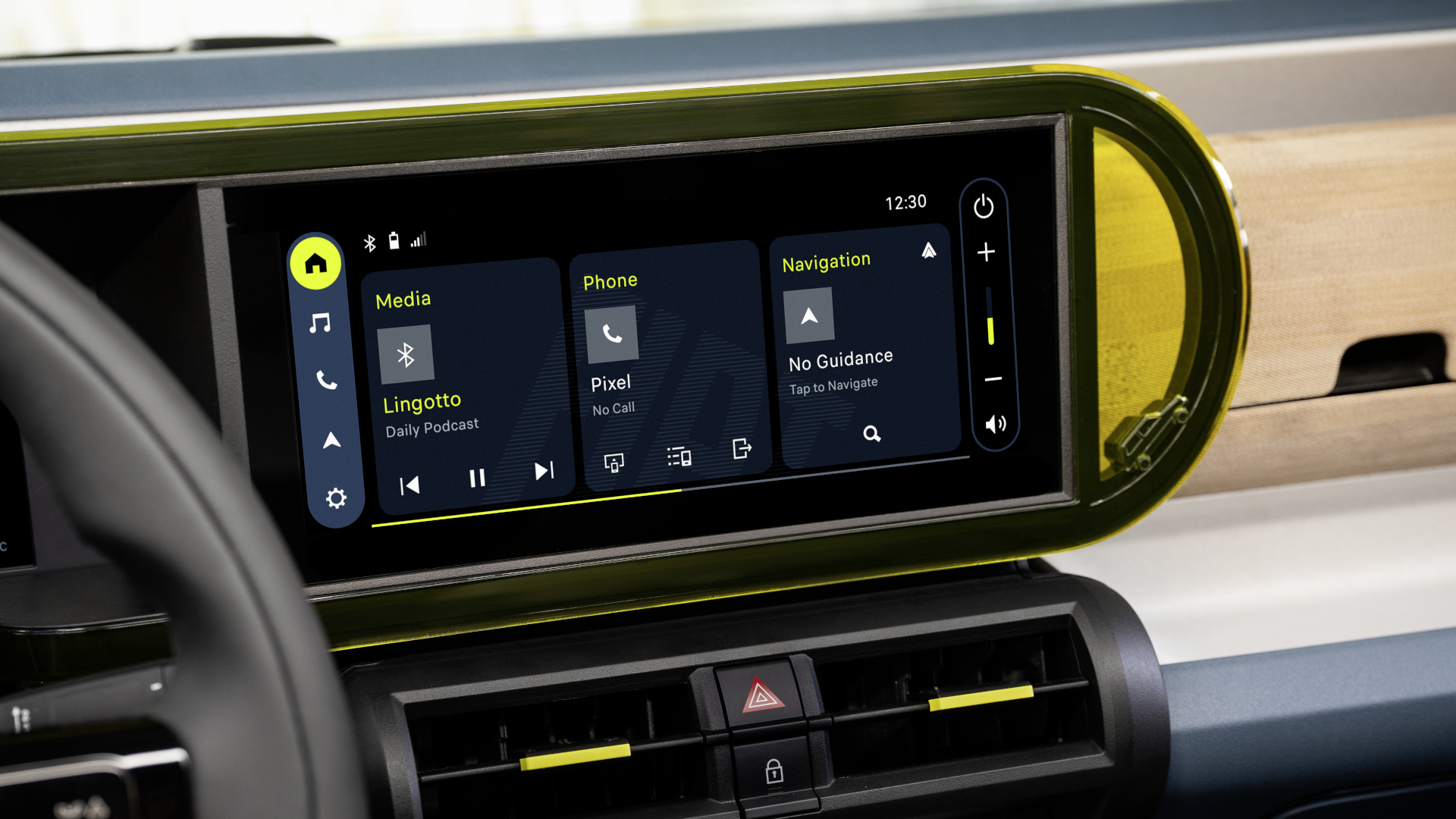 Das Cockpit ist modern gestaltet und verfügt in beiden Varianten über ein digitales Kombiinstrument (10 Zoll) sowie einen 10,25-Zoll-Touchscreen für das Infotainment. Apple CarPlay und Android Auto sind ebenfalls ab Werk kabellos nutzbar, was eine nahtlose Smartphone-Integration ermöglicht. Die „La Prima“-Version bietet zusätzlich ein Navigationssystem und eine Rückfahrkamera, die in der Basisvariante fehlen. Beide Varianten kommen mit einem Soundsystem aus vier Lautsprechern und zwei Hochtönern.