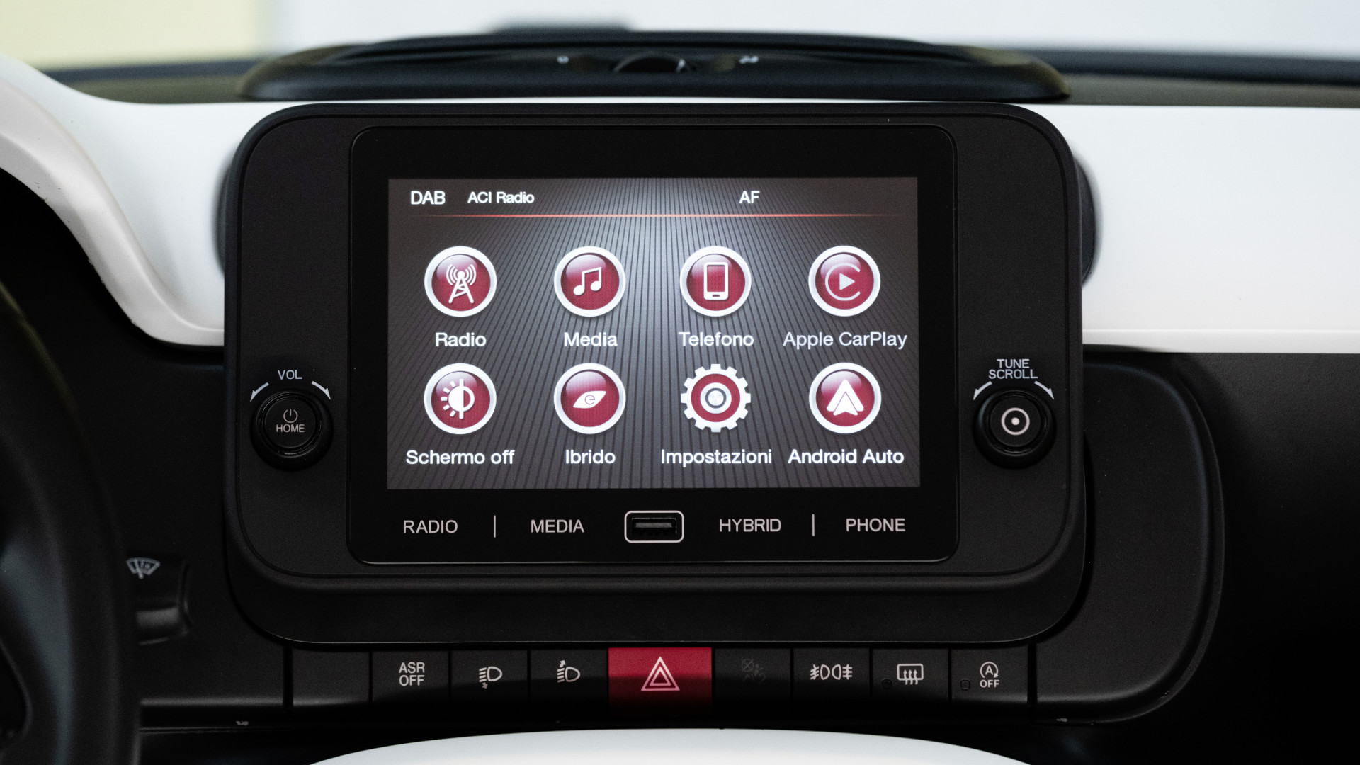 Beim Infotainment hat Fiat nachgelegt: Im Cockpit sitzt nun serienmäßig ein 7-Zoll-Digitaldisplay, das mehrere Layouts bietet und alle wichtigen Fahrinformationen übersichtlich darstellt. Ergänzt wird es von einem ebenfalls 7 Zoll großen Touchscreen für Medien- und Smartphone-Anbindung. Apple CarPlay und Android Auto sind vorhanden, allerdings nur kabelgebunden. Immerhin gibt es einen klassischen Lautstärkeregler, was die Bedienung vereinfacht. Die Konnektivität beschränkt sich auf einen USB-A-Anschluss und einen 12-Volt-Stecker, USB-C oder kabelloses Laden sind nicht verfügbar. Klanglich bleibt das serienmäßige Audiosystem auf Einsteiger-Niveau; wer Wert auf Musikqualität legt, muss zu Zubehör oder Nachrüstlösungen greifen.