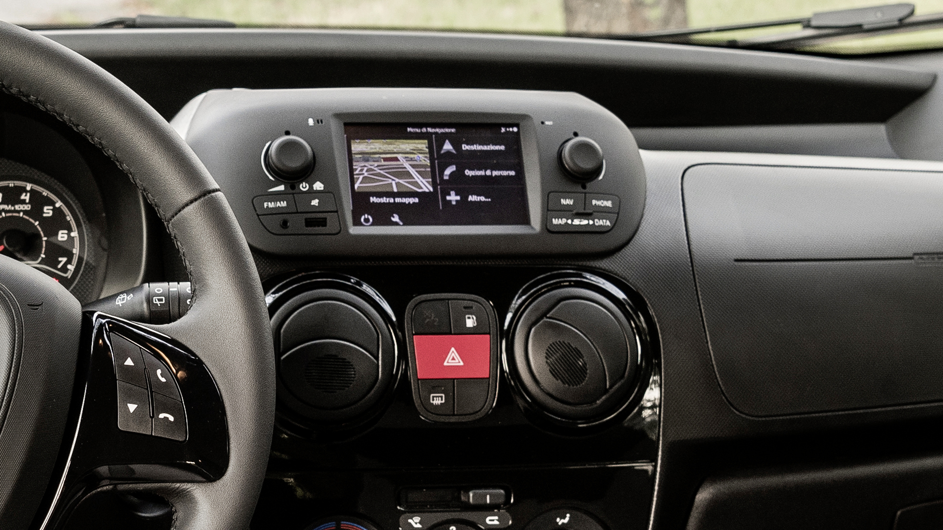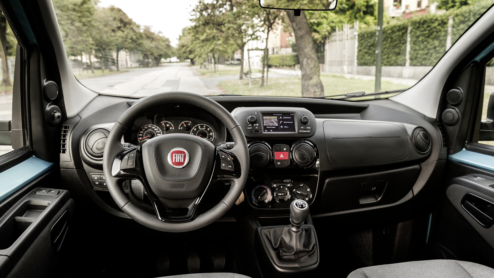 Im Qubo Lounge stecken die manuelle Klimaanlage und Musik drin. Zum 5-Zoll-Touchscreen-Infotainment, das teilweise über die Tasten am Multifunktionslenkrad gesteuert werden kann, gehören das MP3-Radio, die USB/AUX-IN-Anschlüsse, die Audiostreaming-Option und die Bluetooth-Schnittstelle.