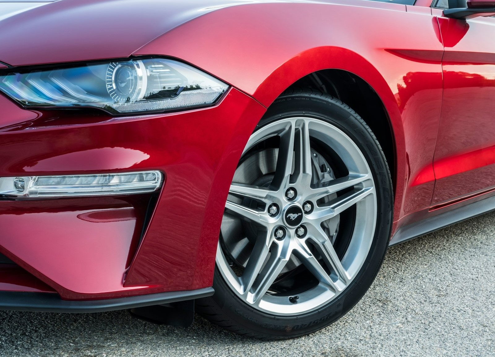 Das Facelift brachte einige Neuerungen mit sich. Vorne wölbt sich die Motorhaube nicht mehr so massiv nach oben, dafür erhielt der Mustang an der Frontpartie sportive Lufteinlässe. Die veränderten Scheinwerfer leuchten jetzt serienmäßig mit LED-Licht.