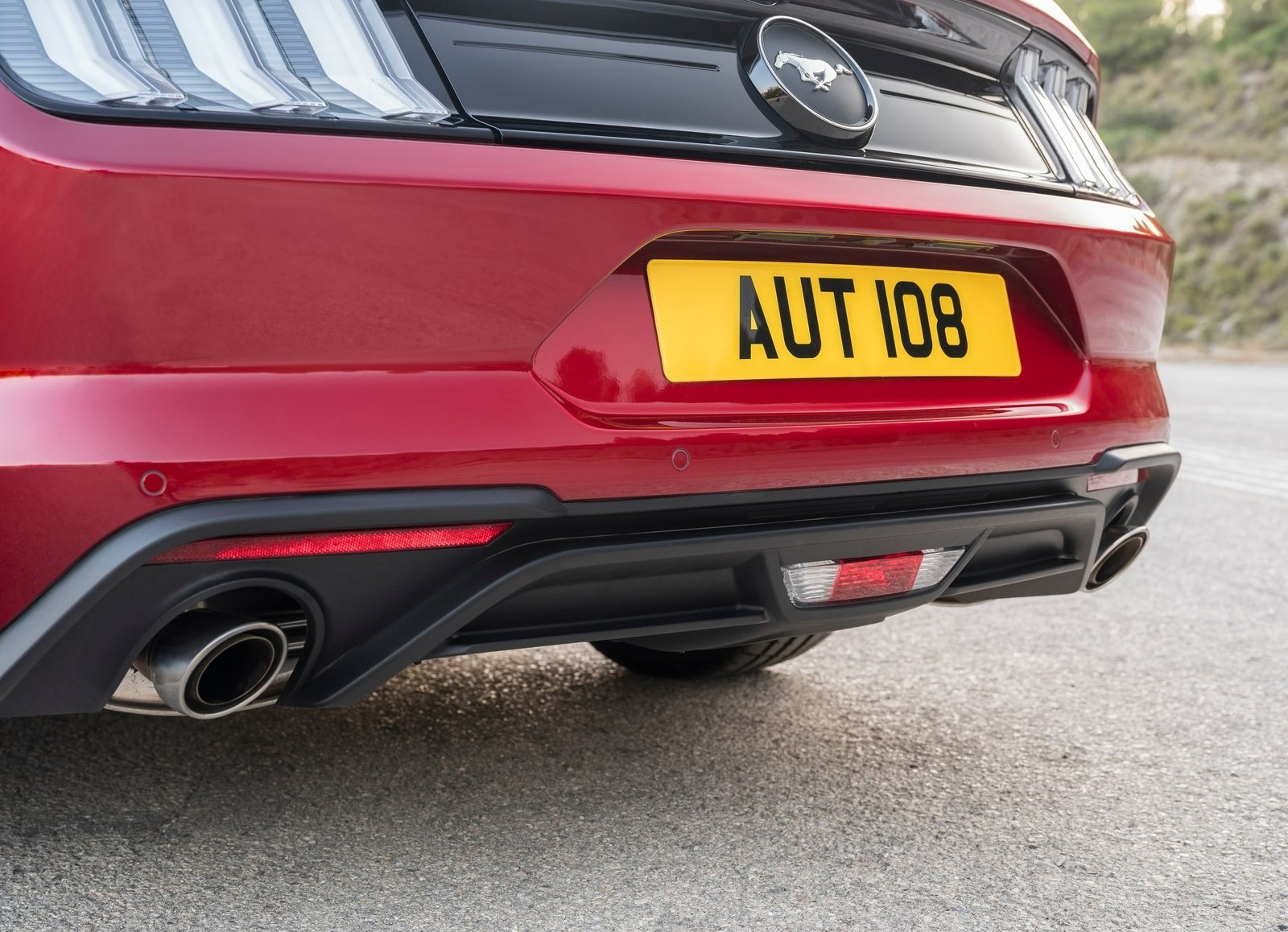 Hinten klingt der Ford mit einem in Schwarz gehaltenen Diffusor und in Kombination mit dem V8-Motor mit einer neuen Vierrohr-Klappenauspuffanlage aus. Ebenso gab es Verbesserungen im Infotainment und der Sicherheit und die konventionellen Zeigerinstrumente wurden durch variierbare Digitalinstrumente ersetzt.