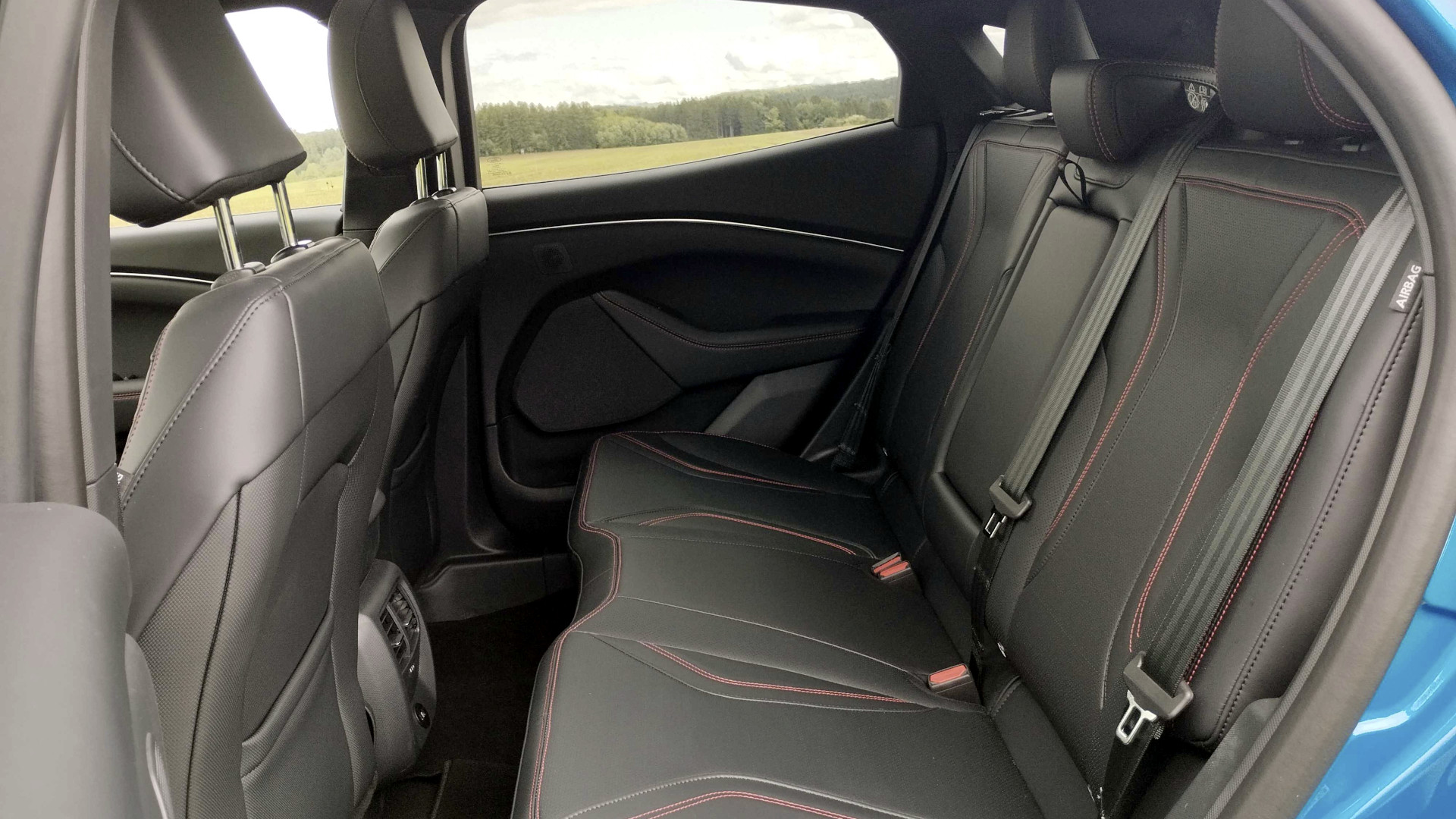 Durch die zwei zusätzlichen Türen wird aus dem Mustang 2+2 ein Mustang 2+Kinder, der es mit seinem Familienauftrag ernst nimmt und damit mit Elektro-SUVs vom Format eines Tesla Model Y, BMW iX3, Jaguar I-Pace und Mercedes EQC konkurriert.