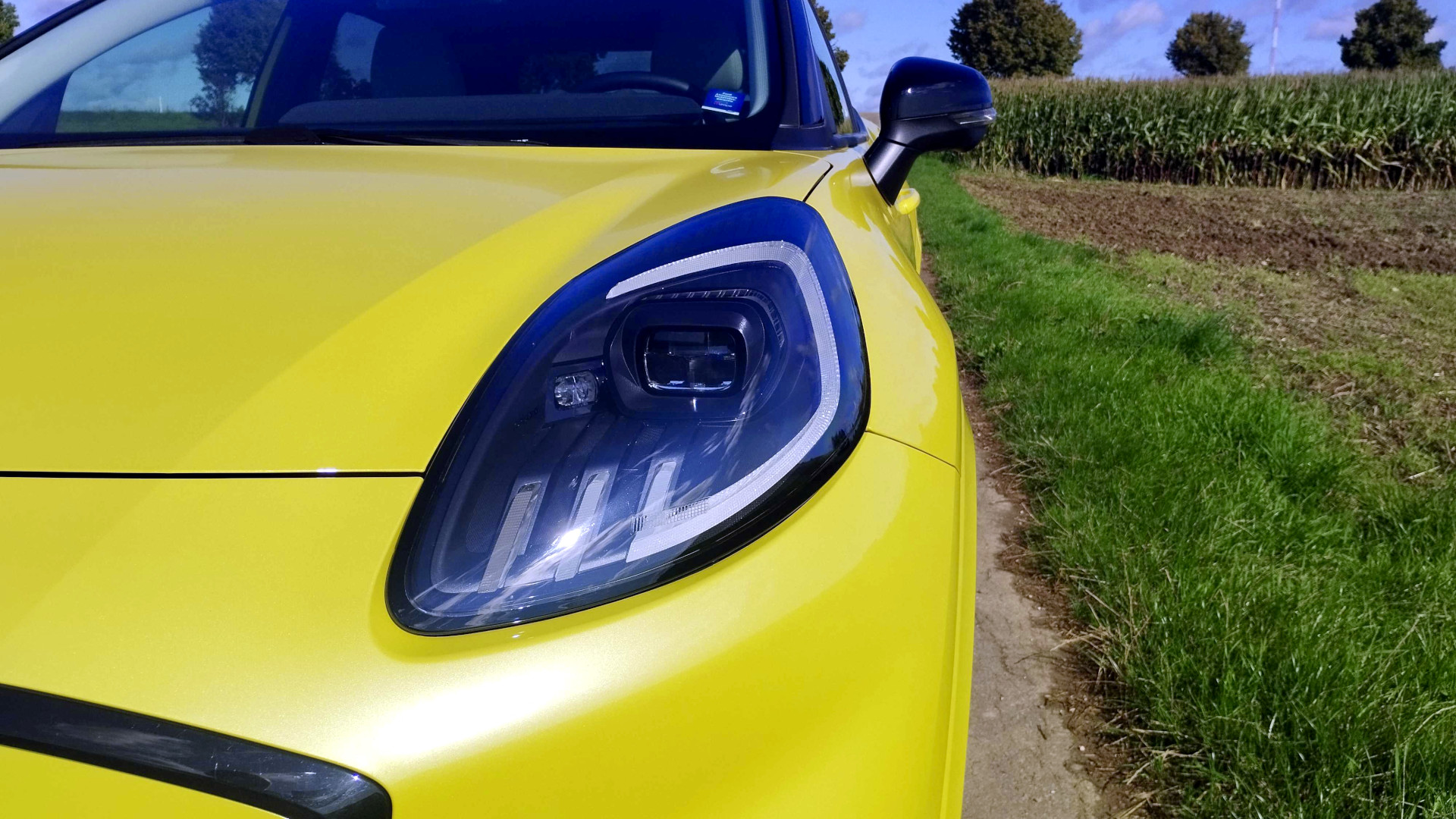 Schon auf den ersten Blick macht der Puma Gen-E vieles richtig: Die Optik außen gefällt uns und lässt ihn etwas wie einen Mini-Macan wirken. Er trifft dabei auch den richtigen Kompromiss aus Kleinwagen-Abmessungen und einigen SUV-Allüren.