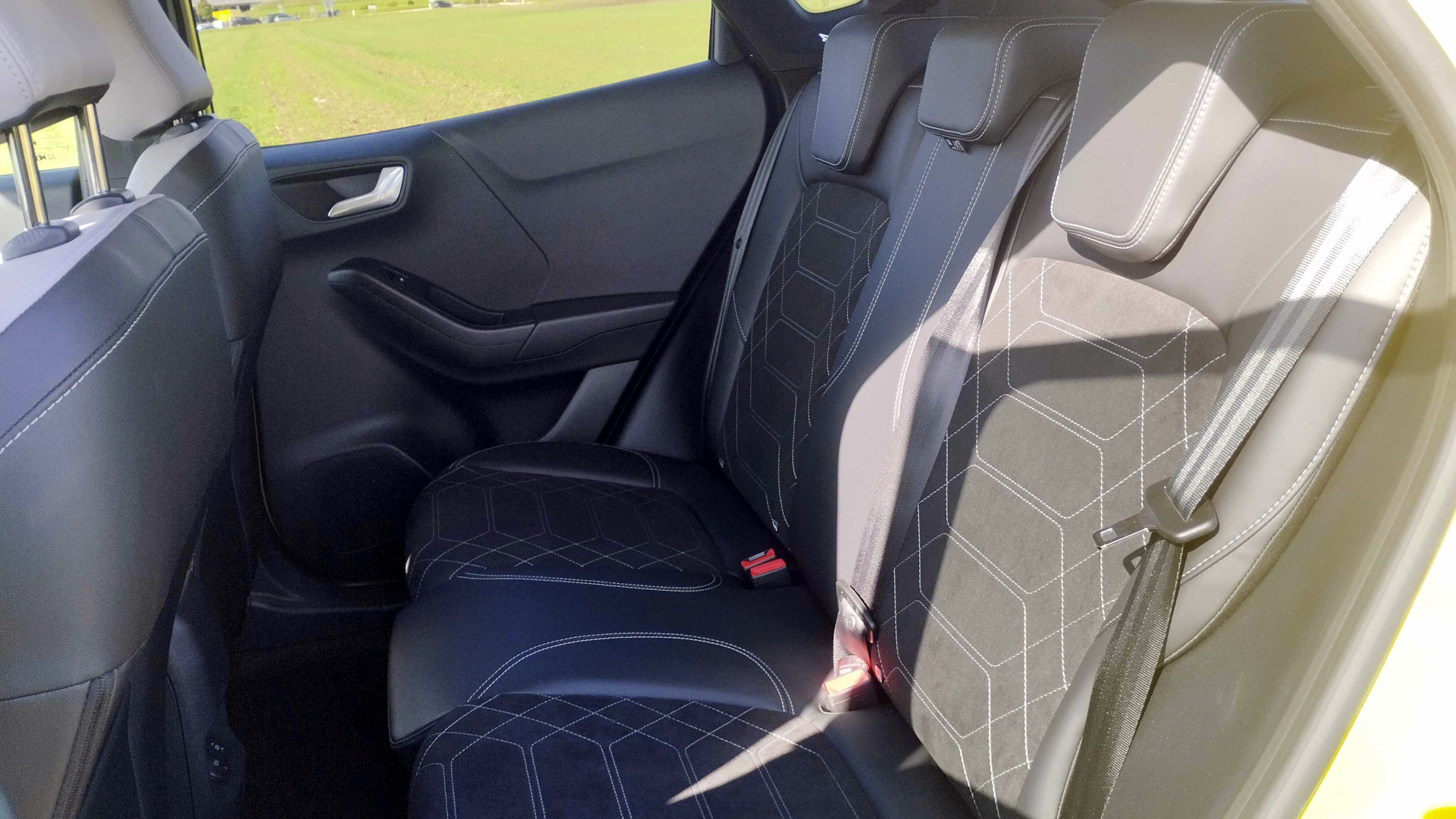 Der Puma Gen-E bietet fünf Sitzplätze, zwei davon hinten mit ISOFIX-Befestigungen für Kindersitze. Die ISOFIX-Halterungen sind gut erreichbar, was das Befestigen einfach macht. Die Rückbank ist geteilt umklappbar (60:40), was flexibles Beladen erlaubt.