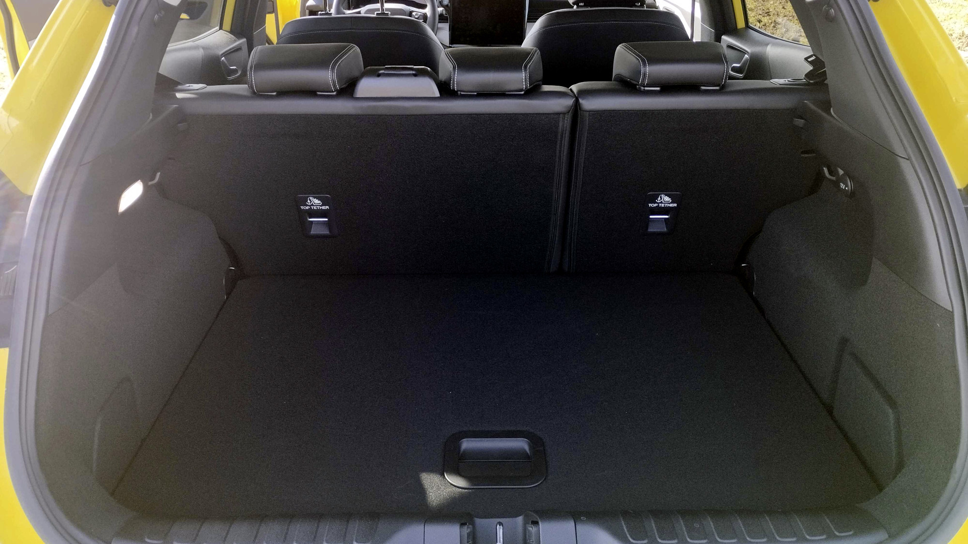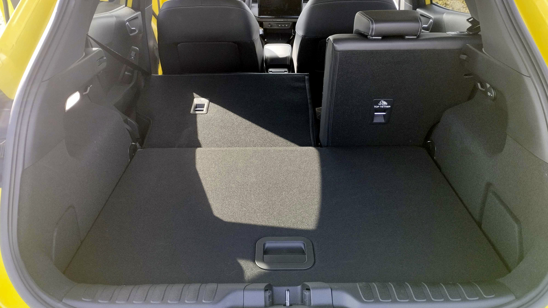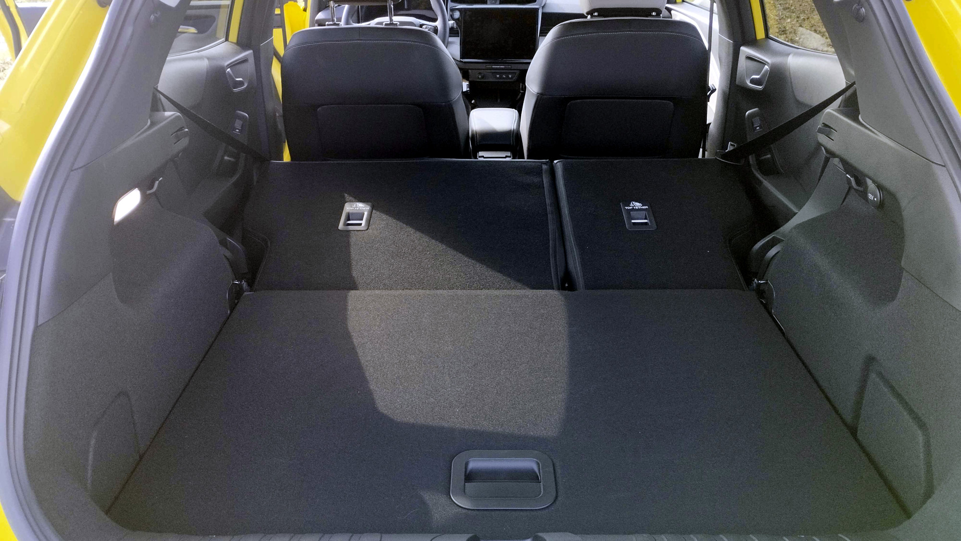 Besonders beeindruckend ist die Kofferraumkapazität, die mit 523 Litern (bis zur Rücksitzlehne) zu den größten in seiner Klasse gehört. Wer die Rücksitze umklappt, erweitert das Volumen sogar auf bis zu 1.283 Liter – genug für größere Einkäufe, Gepäck für die Urlaubsfahrt oder ein Fahrrad (mit ausgebautem Vorderrad). Dank 1.000 mm Ladebreite zwischen den Radkästen und einer maximalen Ladehöhe von 865 mm passen auch sperrige Gegenstände wie Kinderwagen problemlos hinein.