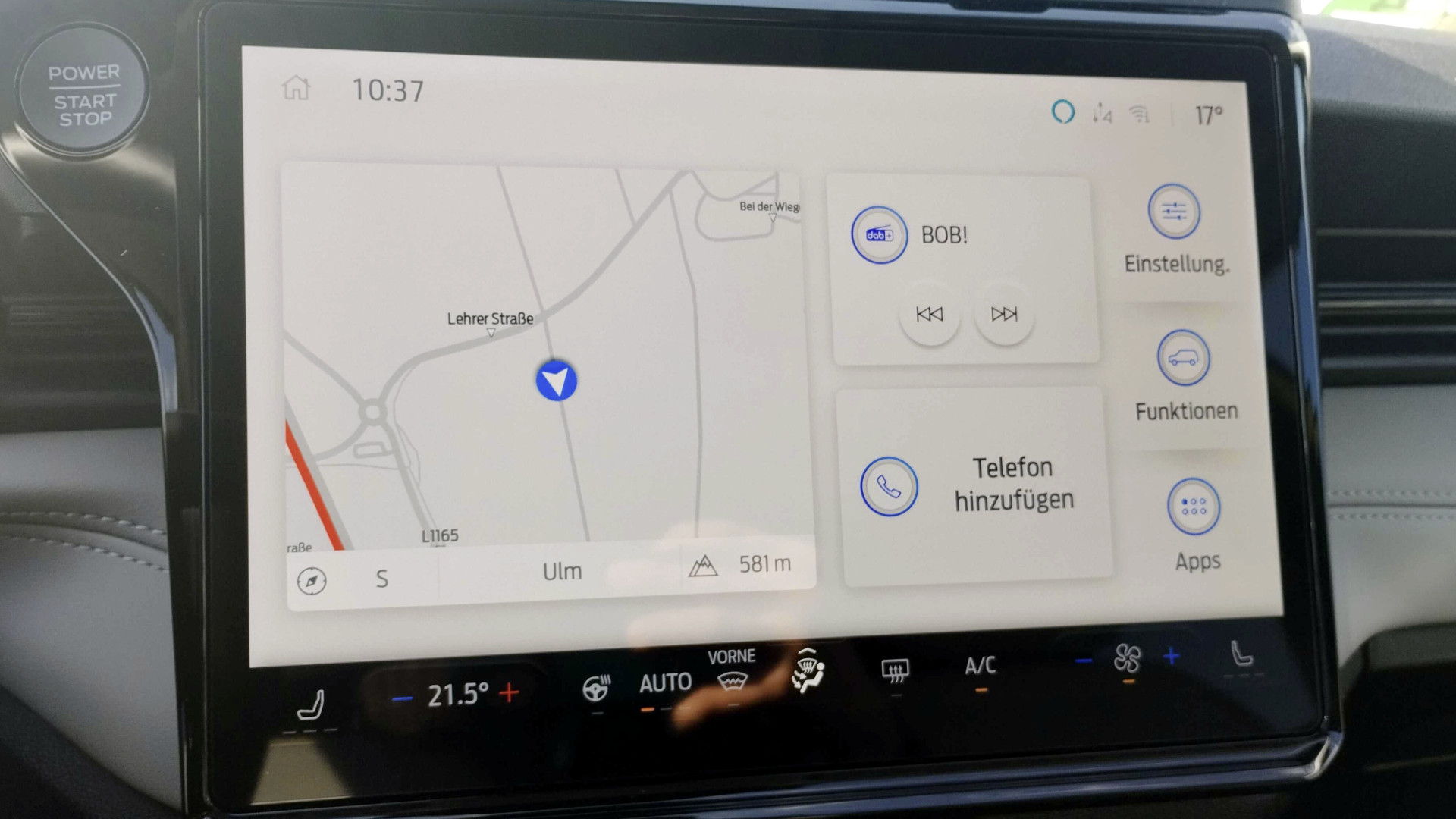 Auch die Mitfahrenden auf den Vordersitzen haben ordentlich Platz, während es hinten aufgrund der Batterie und des optionalen Panoramadachs etwas beengter zugeht. Mein Fazit: Dass das Platzangebot hinten etwas geringer ausfällt, ist absolut verschmerzbar. In der Praxis bin ich in diesem Segment meist zu zweit mit Gepäck unterwegs und somit setzt Ford den Fokus beim Raumangebot für mich genau richtig.