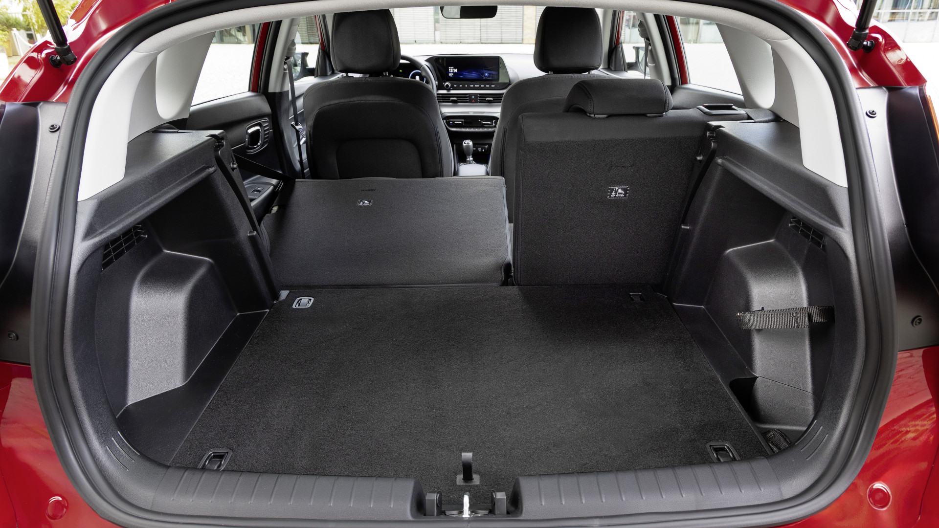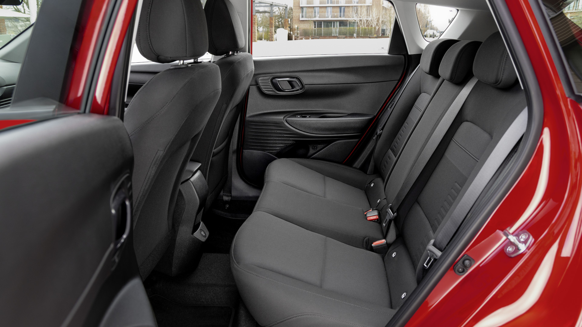 Der Hyundai Bayon ist mit 1,50 Meter um fünf Zentimeter höher als der Kleinwagen Hyundai i20, mit dem er sich die Teile und die Technik teilt. Das erleichtert den Ein- und Ausstieg. Das Längenplus von 14 Zentimetern gegenüber dem i20 sorgt für ein ordentliches Platzangebot im Innenraum. Auf den großen Sitzen findet man auch als großer Mensch eine bequeme Sitzposition.