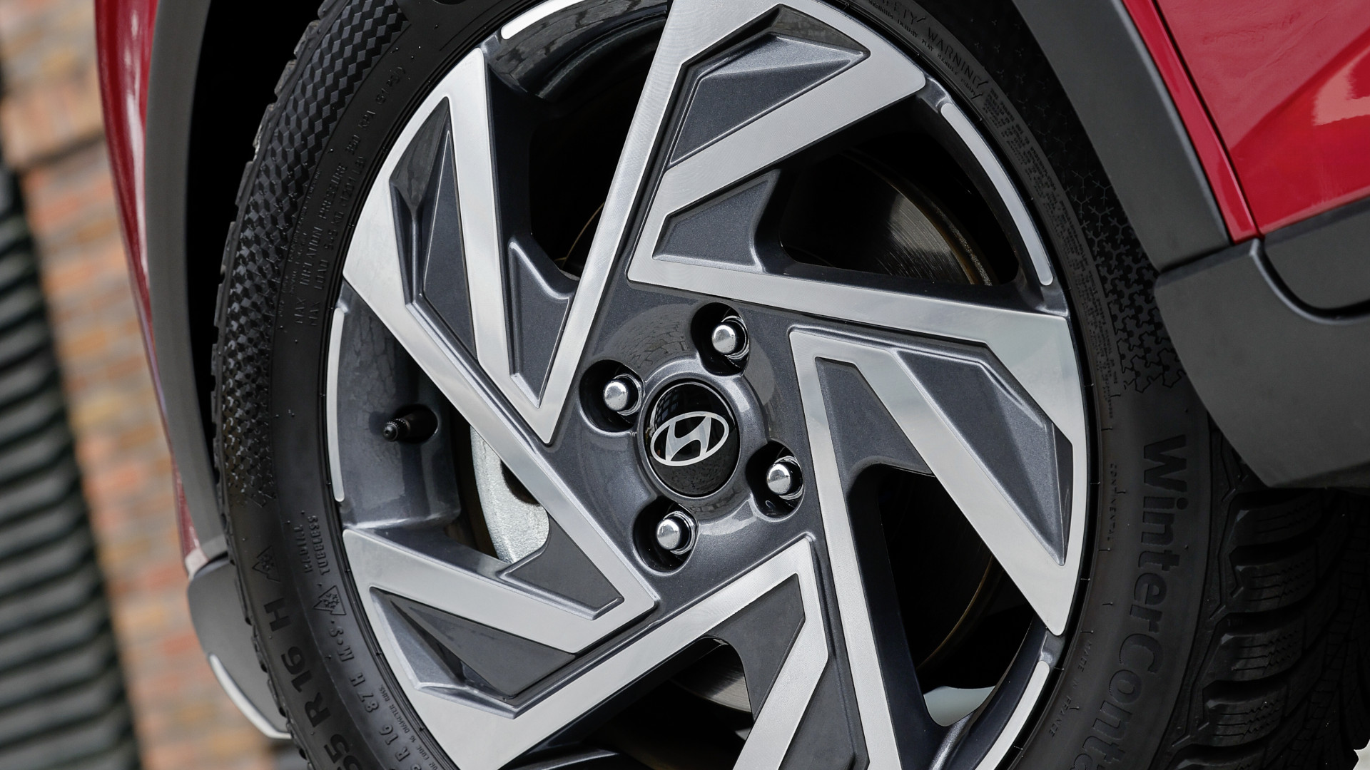 An den Vorderrädern kommen schwächere Motoren als im Kona zum Zuge, der bis zu 198 PS auf die Straße schickt. Auf einen reinen Elektroantrieb und echten Hybridantrieb, den der Kona mit einem 141 PS starken Ensemble aus Benzin- und Elektromotor zu bieten hat, verzichtet der neue Bayon ebenso.