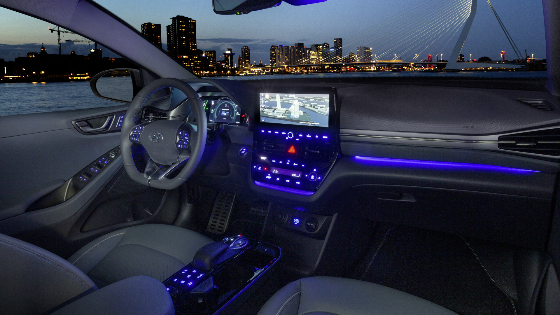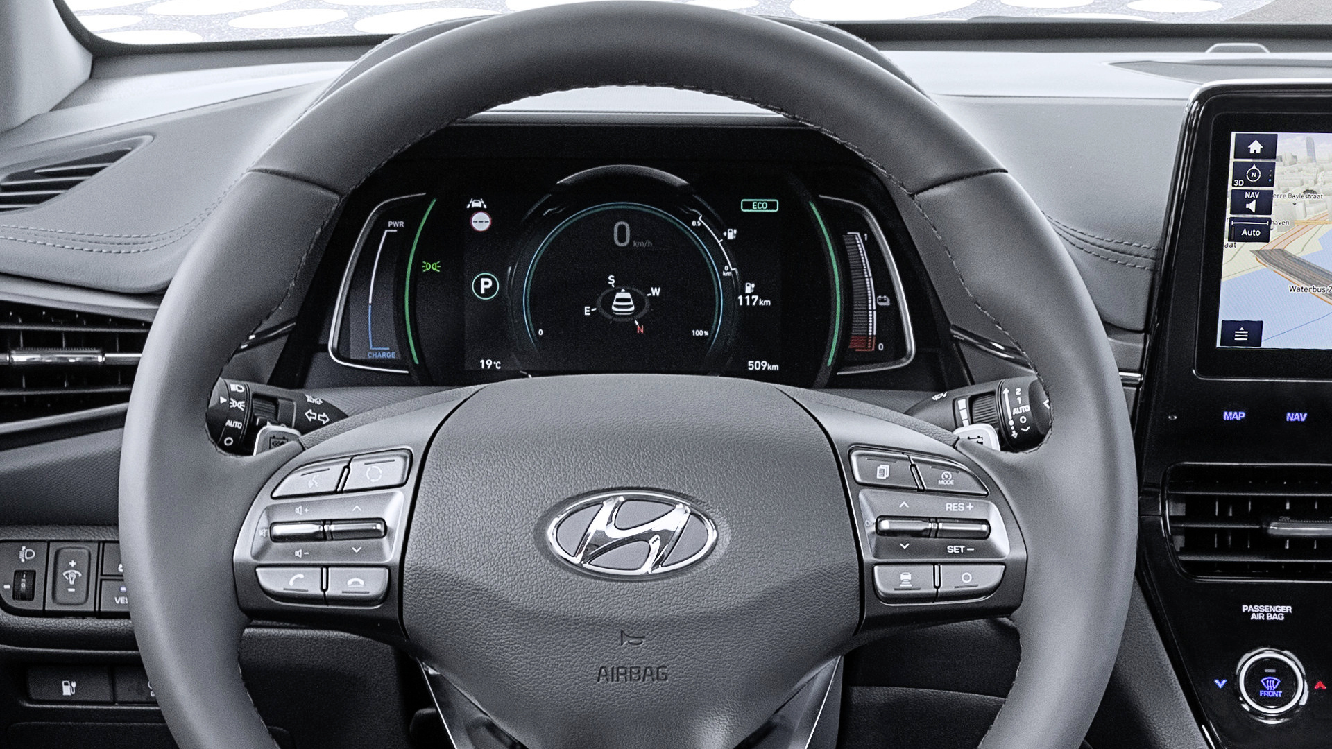 Bei Tesla und Polestar dominieren riesige Displays, Hyundai ist mit dem IONIQ Elektro traditioneller. Mit der aktuellen Generation zog zusätzlich zum digitalen Tacho ein 10,25 Zoll großer Bildschirm ein, der die meisten der Funktionen steuert.