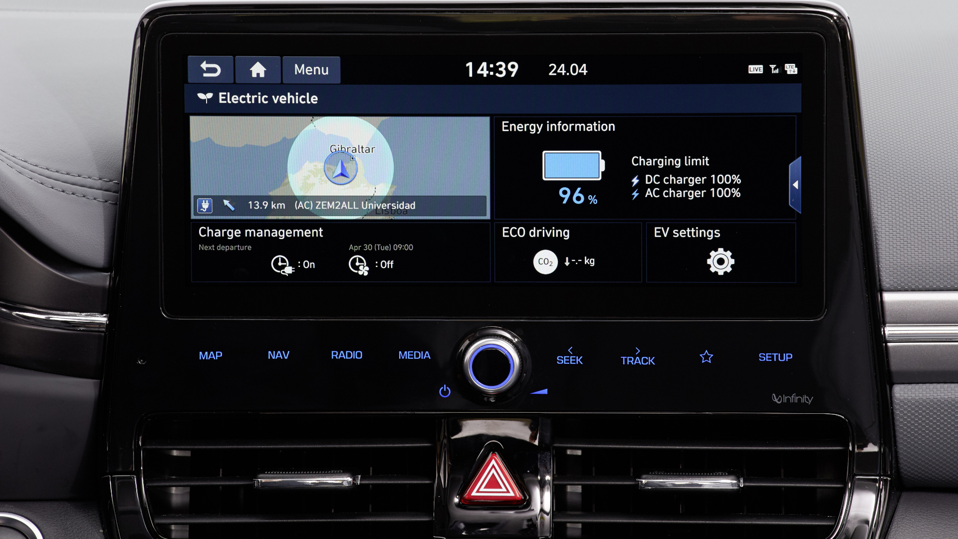 Die Darstellung ist scharf, die Programmierung übersichtlich, die Bedienung vorbildlich. Der Bildschirm zeigt sogar die in der Umgebung liegenden Ladesäulen an, unterscheidet diese aber leider nicht nach Ladegeschwindigkeit. Auch ein Live-Update fehlt - ob die Ladesäule gerade in Betrieb ist oder nicht, lässt sich mit der Navigationsfunktion nicht erkennen.