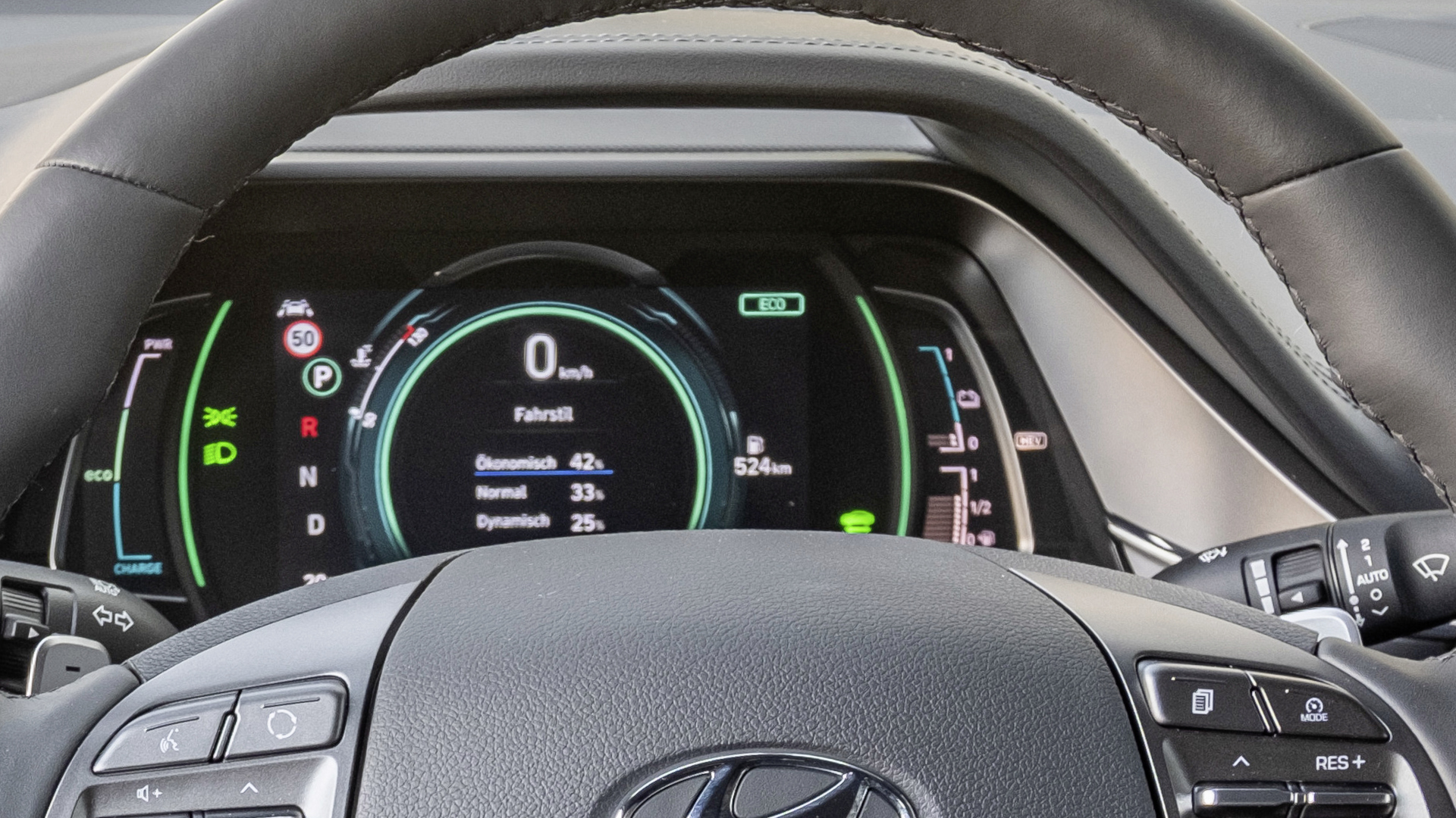 Im Ioniq reist man also kommod und durchfährt Landstraßen überraschend leichtfüßig. Die präzise Lenkung unterstützt das. Der Richtungsgeber arbeitet in der Mittellage allerdings etwas nervös, was bei schneller Autobahnfahrt dem Geradeauslauf nicht förderlich ist.