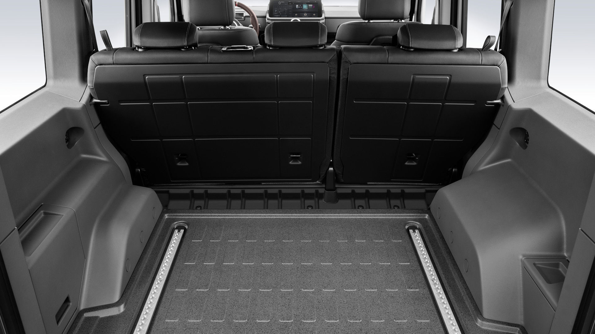Die Laderampe ist (außer im Utility Wagon 5-Sitzer) immer über eineinhalb Meter lang und zwischen den Radkästen über ein Meter breit. Die mit 90 Zentimeter Höhe sehr hohe Ladekante resultiert aus der großen Bodenfreiheit und dem hohen Fahrzeugaufbau. So ist das nun einmal in echten Geländewagen.