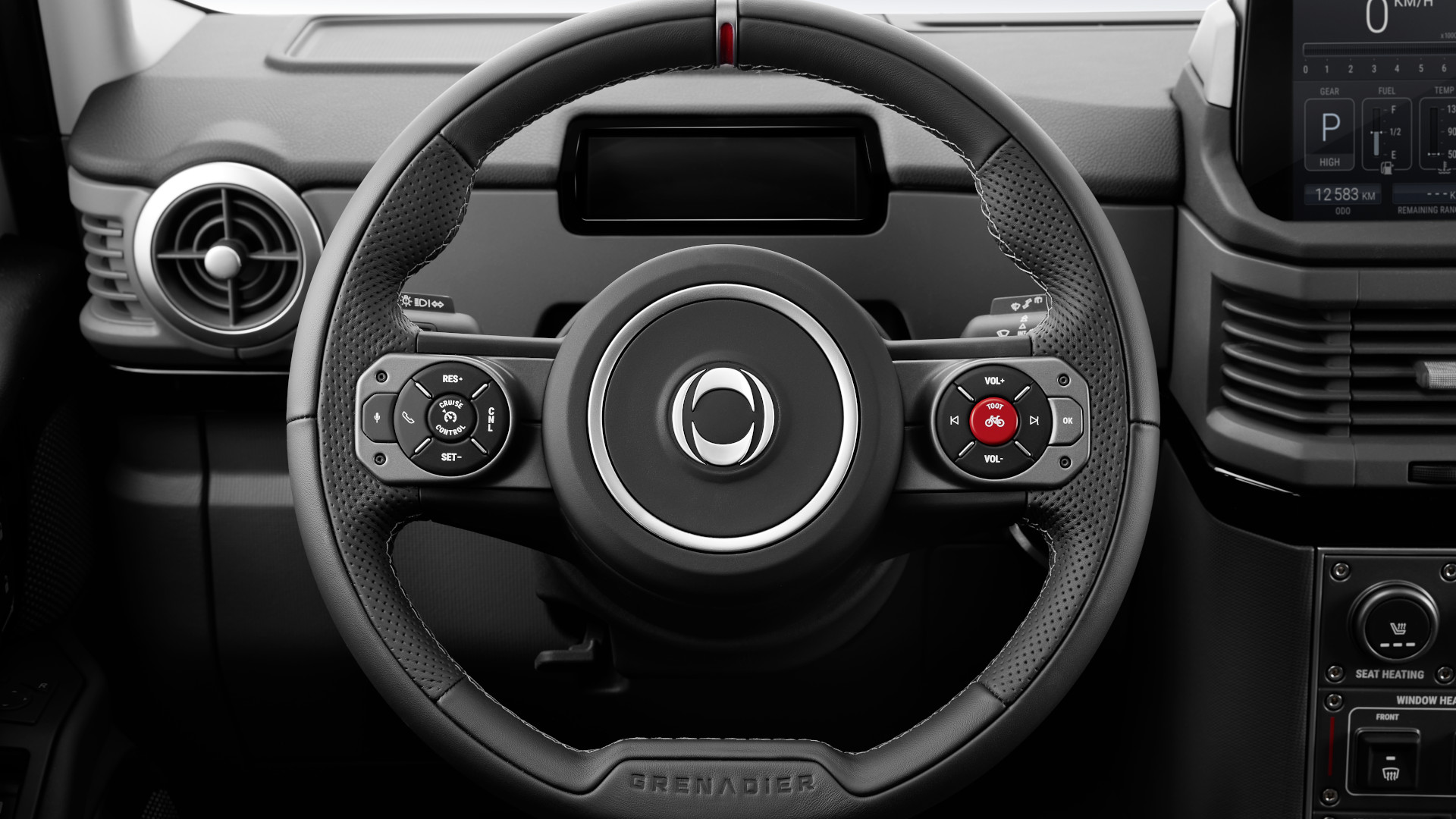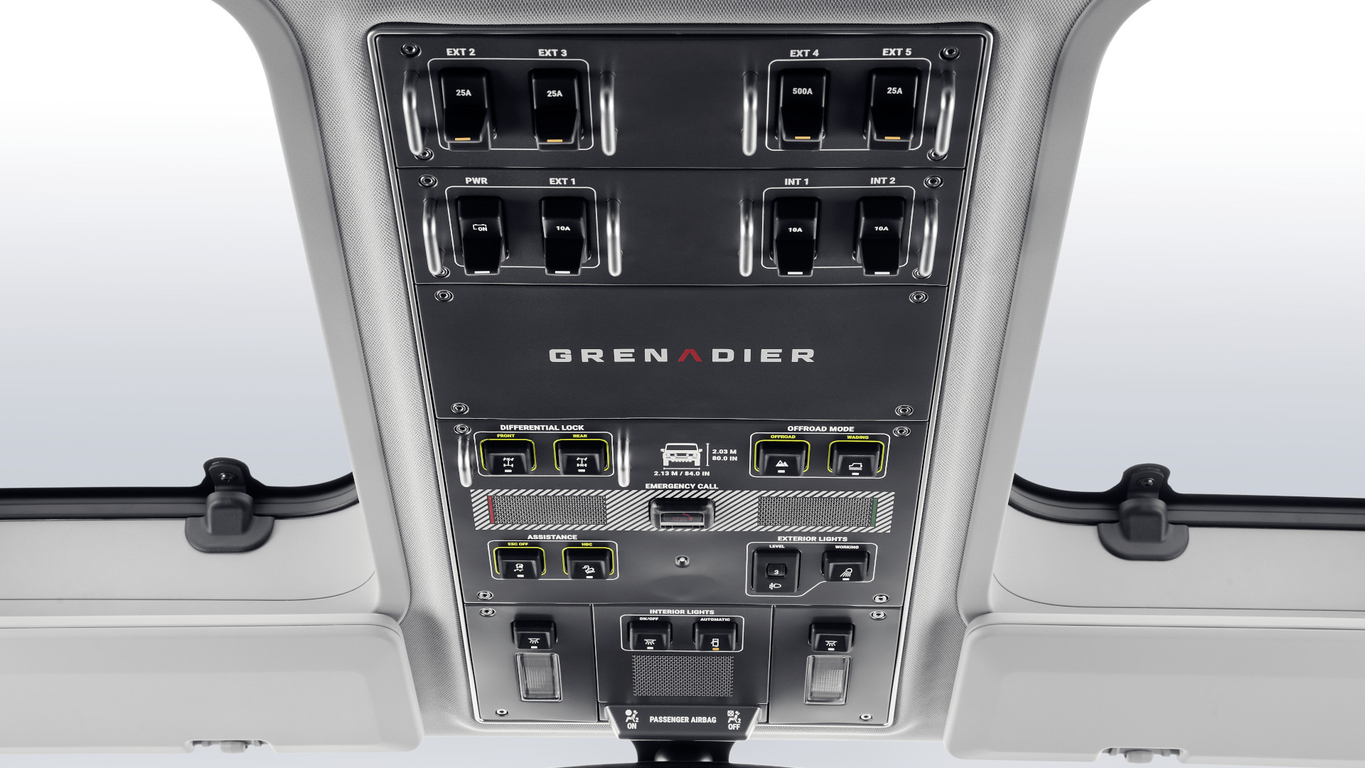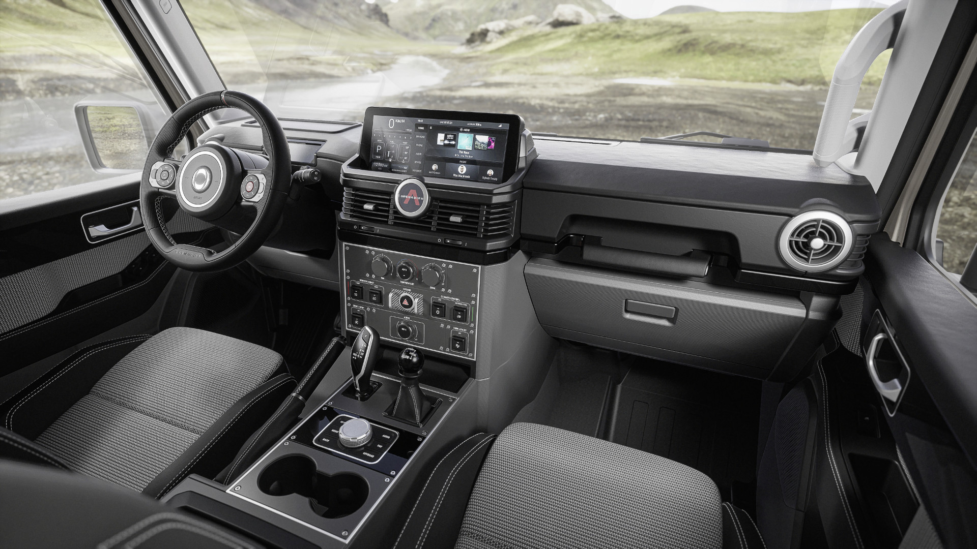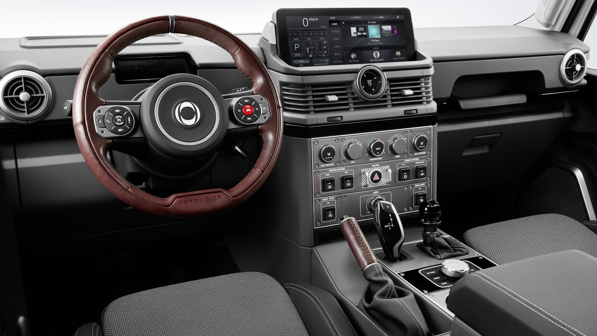 Der Innenraum ist funktional gestaltet. Die großen Tasten auf der Mittelkonsole sind groß beschriftet, sitzen nicht zu nah beieinander und lassen sich auch mit Handschuhen bedienen. Wer auf physische Schalter statt auf Touch-Bedienung steht, findet seine Freude am Grenadier. Einzig die Druckpunkte der Tasten sind gewöhnungsbedürftig. Die Knöpfe reagieren spät und müssen spät, dafür mit klarem Feedback, in die Konsole gepresst werden.