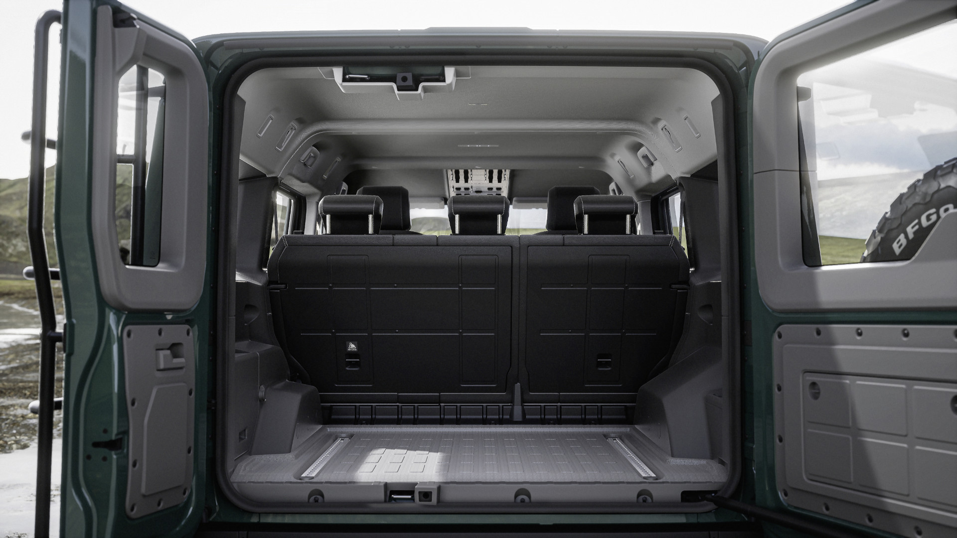 Viel Platz wird in allen drei Grenadier Varianten geboten. Vor allem vorne auf den sehr bequemen Sitzen von Recaro und hinter der im Verhältnis 30:70 geteilten Hecktür mit 1.152 bis 2.088 Liter Laderaumkapazität.