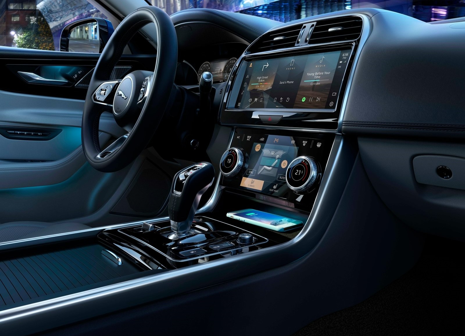 Von diesem ist seit dem 2019er Facelift mehr zu spüren. Von der Anmutung der Kunststoffe und der Materialqualität hat das XE Facelift mehr zu bieten. Das Interieur präsentiert sich edler mit weichen Oberflächen und dem neuen Multifunktionslenkrad. Das von Jaguars Elektroauto i-Pace bekannte Touchscreensystem mit zwei Bildschirmen und die induktive Ladestation für das Smartphone in der Mittelkonsole verorten die Multimedia im Zeitgeist.