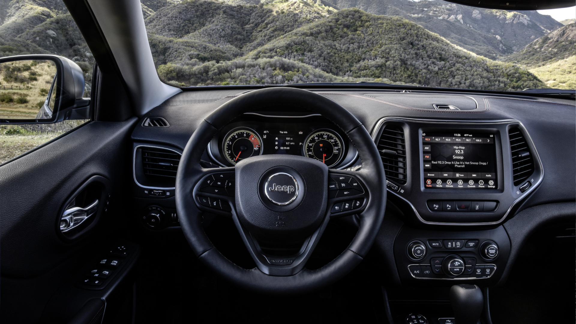 Im Cockpit sitzt man statt auf Stoff auf mit Nappaleder bezogenen Vordersitzen, die sich elektrisch verstellen und beheizen lassen. Der Gepäckraum ist mit Teppich ausgekleidet und die Heckklappe öffnet sich elektrisch und berührungslos durch eine Fuß-Kick-Bewegung. Und noch ein wenig sicherer ist man mit den zusätzlichen Parksensoren vorne und dem automatischen Abstandsregeltempomat (ACC) im Cherokee Limited zudem unterwegs.