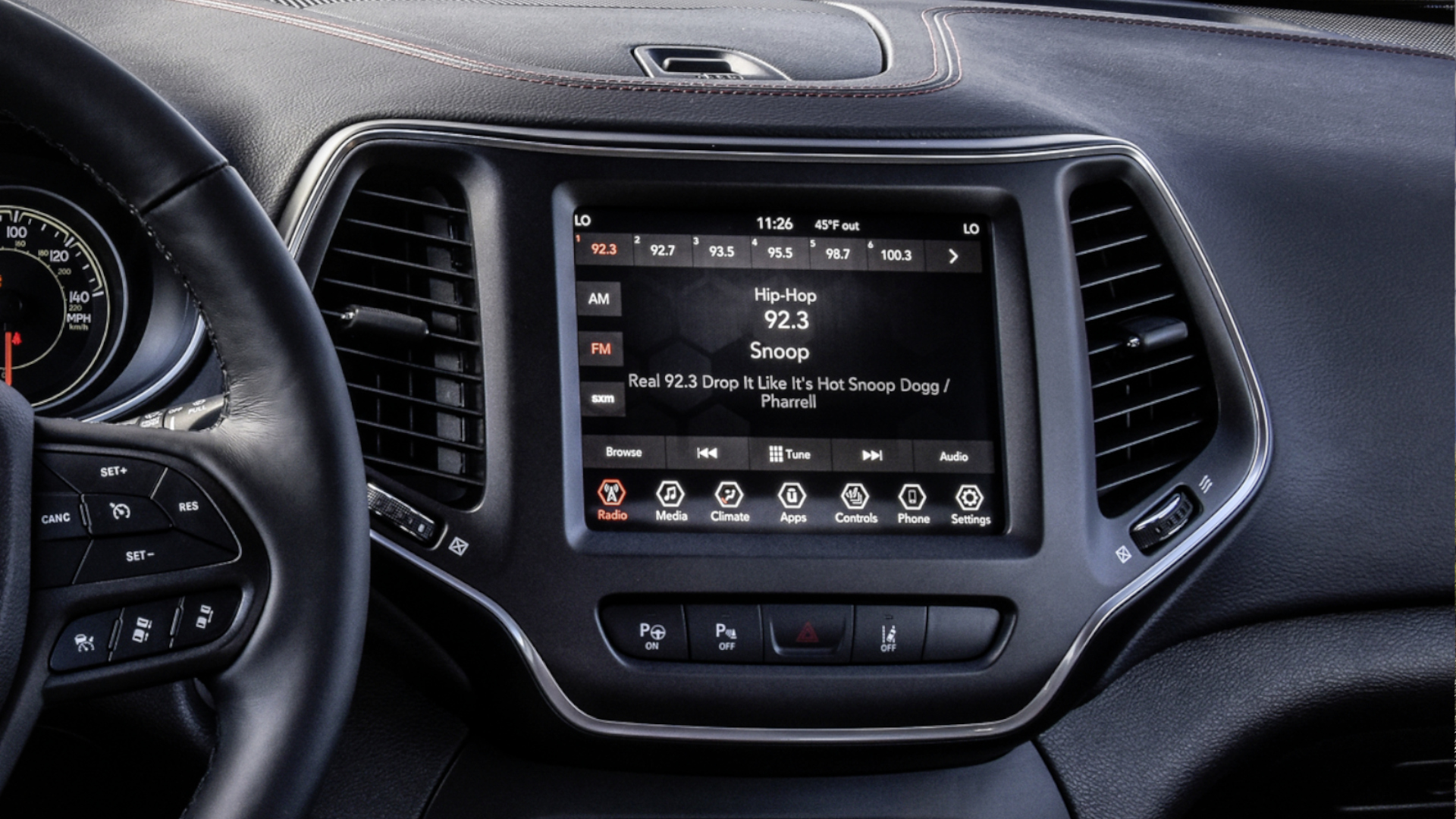 Im Cherokee Limited, der auf 18-Zoll-Rädern steht, kommen ein Navigationssystem, ein besseres Soundsystem und ein konfigurierbares TFT-Instrumentendisplay mit 17,8 Zentimeter Bildschirmdiagonale hinzu.