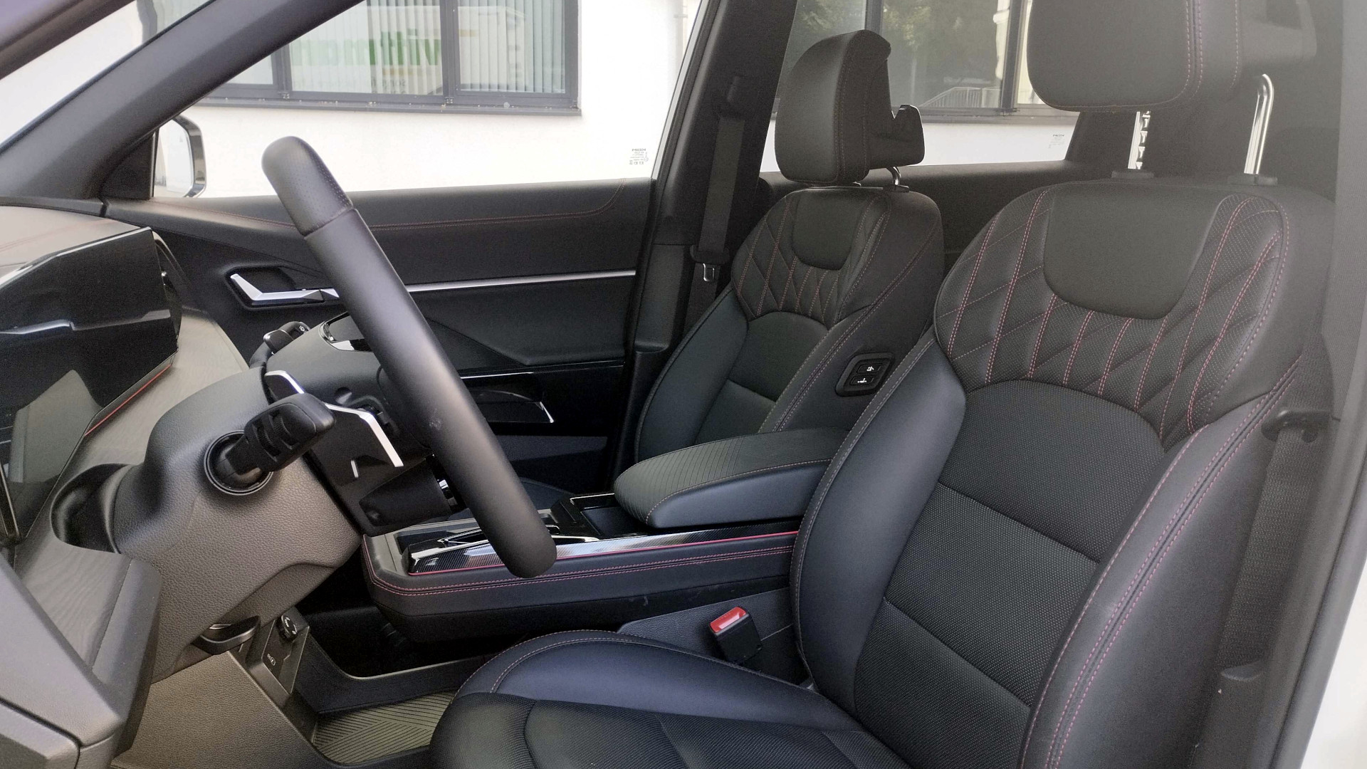 Das Interieur - bei unserem Testwagen schlicht schwarz - ist in mehreren Ausführungen erhältlich, darunter eine zweifarbige Innenausstattung in Braun und Beige sowie eine besonders elegante Variante mit Wildleder in Schwarz-Rot, die in den höheren Ausstattungsvarianten verfügbar ist.