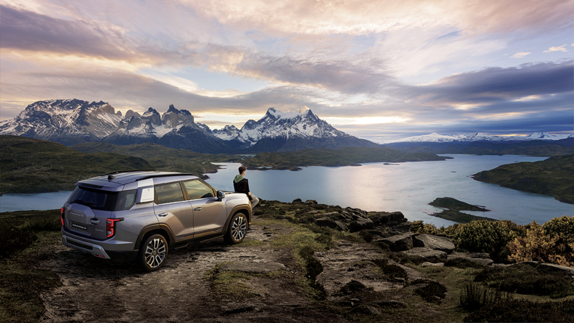 „Parque Nacional Torres del Paine“ ist der Name des Nationalparks im Süden des Landes. Die raue Berglandschaft der Cordillera del Paine mit sehr markanten Gipfeln greift der KGM Torres in den kantigen Formen seiner Karosserie auf. Vom robusten Offroader künden auch die Verzurrösen auf der Motorhaube, der Unterfahrschutz, die wuchtigen Radkästen, der seitliche Griff an der Heckklappe und die Ersatzradwölbung, aber das täuscht. Der Unterfahrschutz ist nur angetäuscht. Die Heckklappe öffnet sich nicht seitlich, sondern konventionell nach oben. Statt eines Ersatzrades an der Hecktür findet sich im Kofferraum ein schnödes Reifenreparaturset.