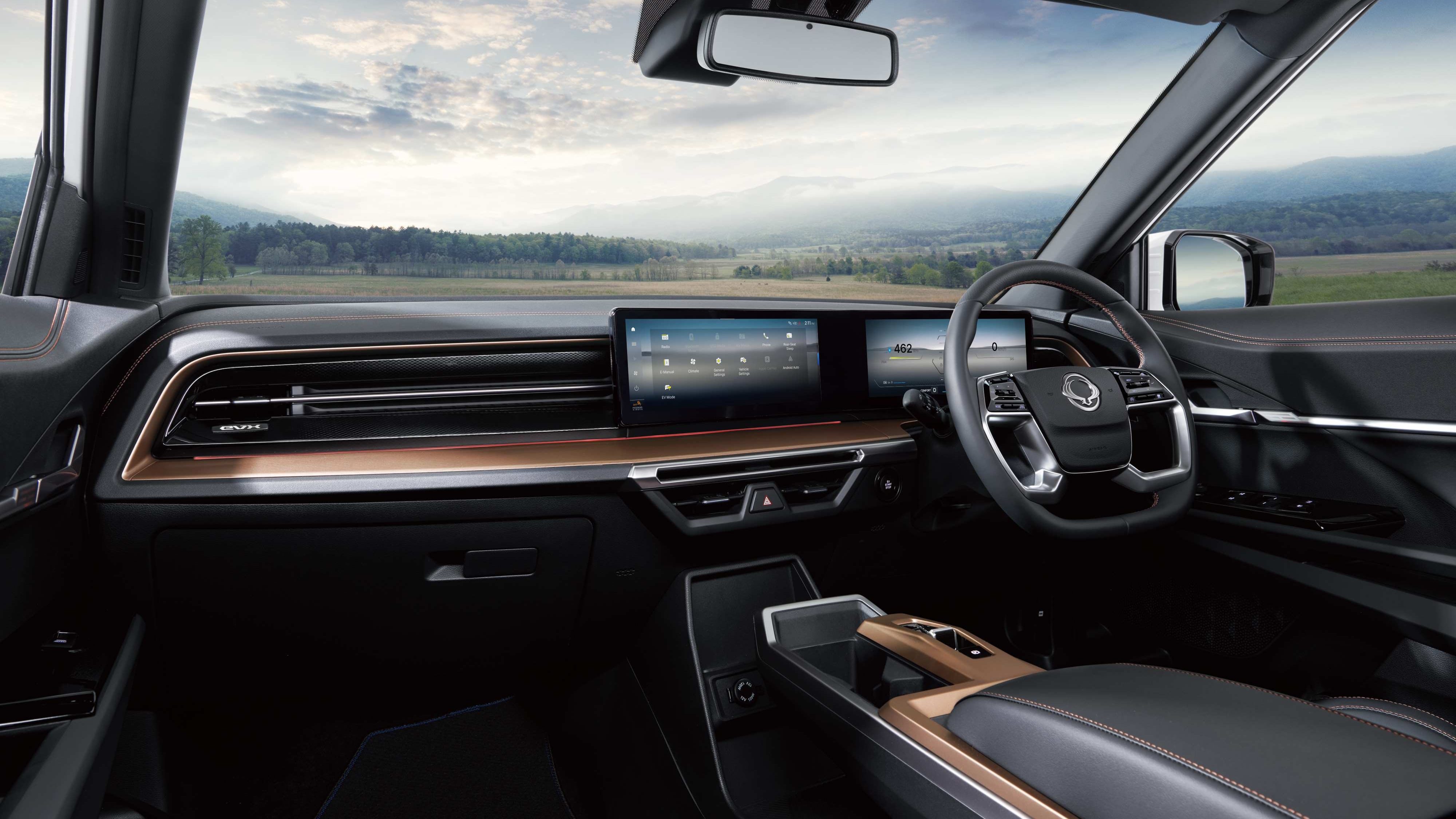 Im Cockpit orientiert sich KGM am aktuellen Zeitgeist im Automobilbau. Fahrende blicken auf zwei 12,3 Zoll große Displays, die in einer Leiste untergebracht sind. Der volldigitale Tacho bietet mehrere Auswahlmöglichkeiten für die Ansicht, z.B. Navigation, Fahrassistenz oder Bordcomputer. Der Touchscreen des Infotainments arbeitet wie ein Tablet: Die Icons lassen sich wie Apps auswählen und starten die jeweilige Funktion oder Einstellungsmöglichkeit. Schade ist, dass es kein direktes Bedienelement für die Klimaeinstellungen gibt; dies muss auf dem Bildschirm erledigt werden. Immerhin bietet das Lenkrad eine Kombination aus Tasten und Kippschaltern an, um wichtige Funktionen zu steuern.
