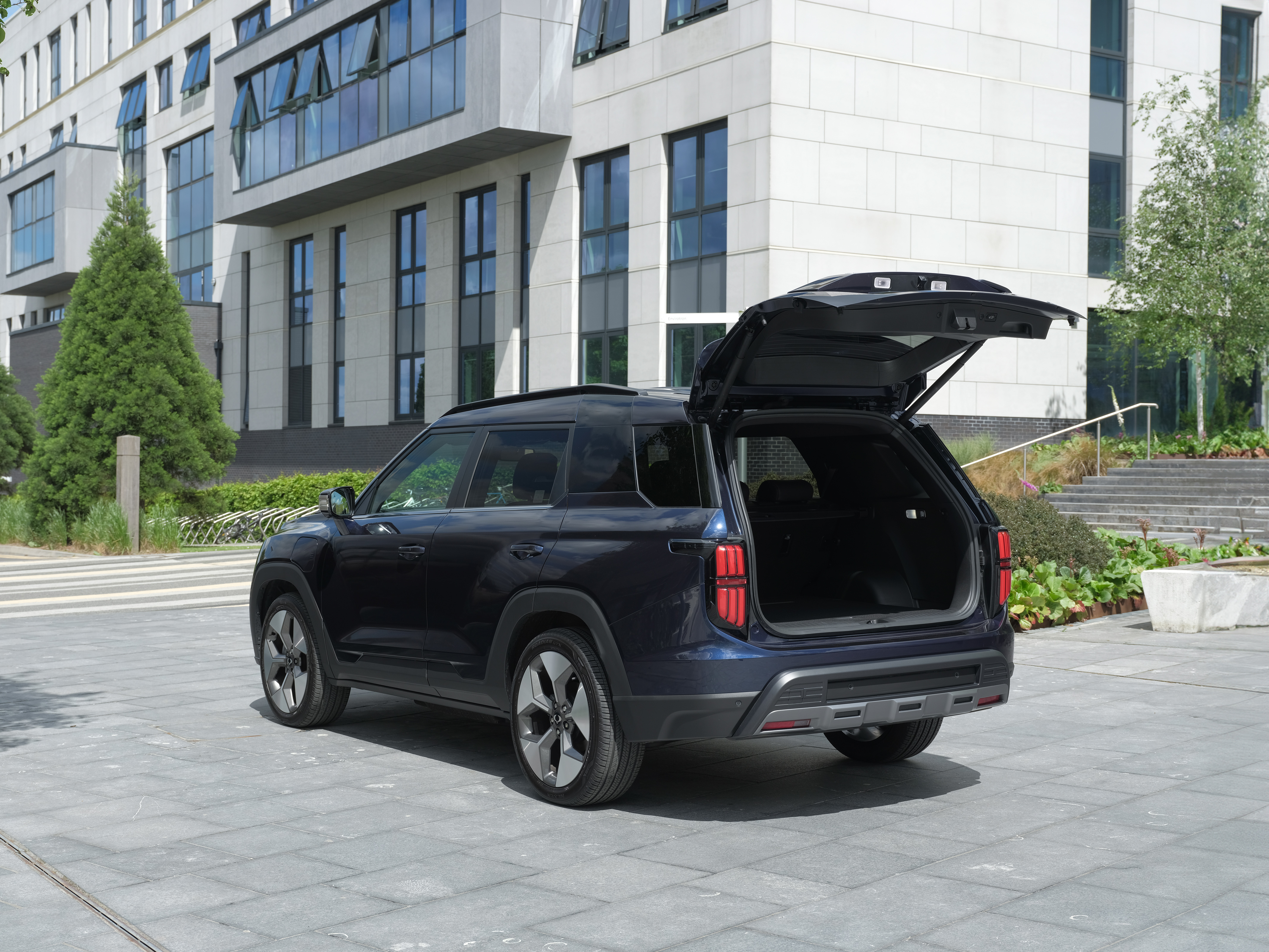 Den Kofferraumgriff hat der südkoreanische Hersteller trotzdem seitlich rechts angebracht. Das verleitet zu der Annahme, dass sich die Klappe zur Seite öffnet, dem ist jedoch nicht so. Im Griff befindet sich eine Taste, nach deren Aktivierung die Kofferraumklappe elektrisch (aufpreispflichtig) nach oben schwingt.