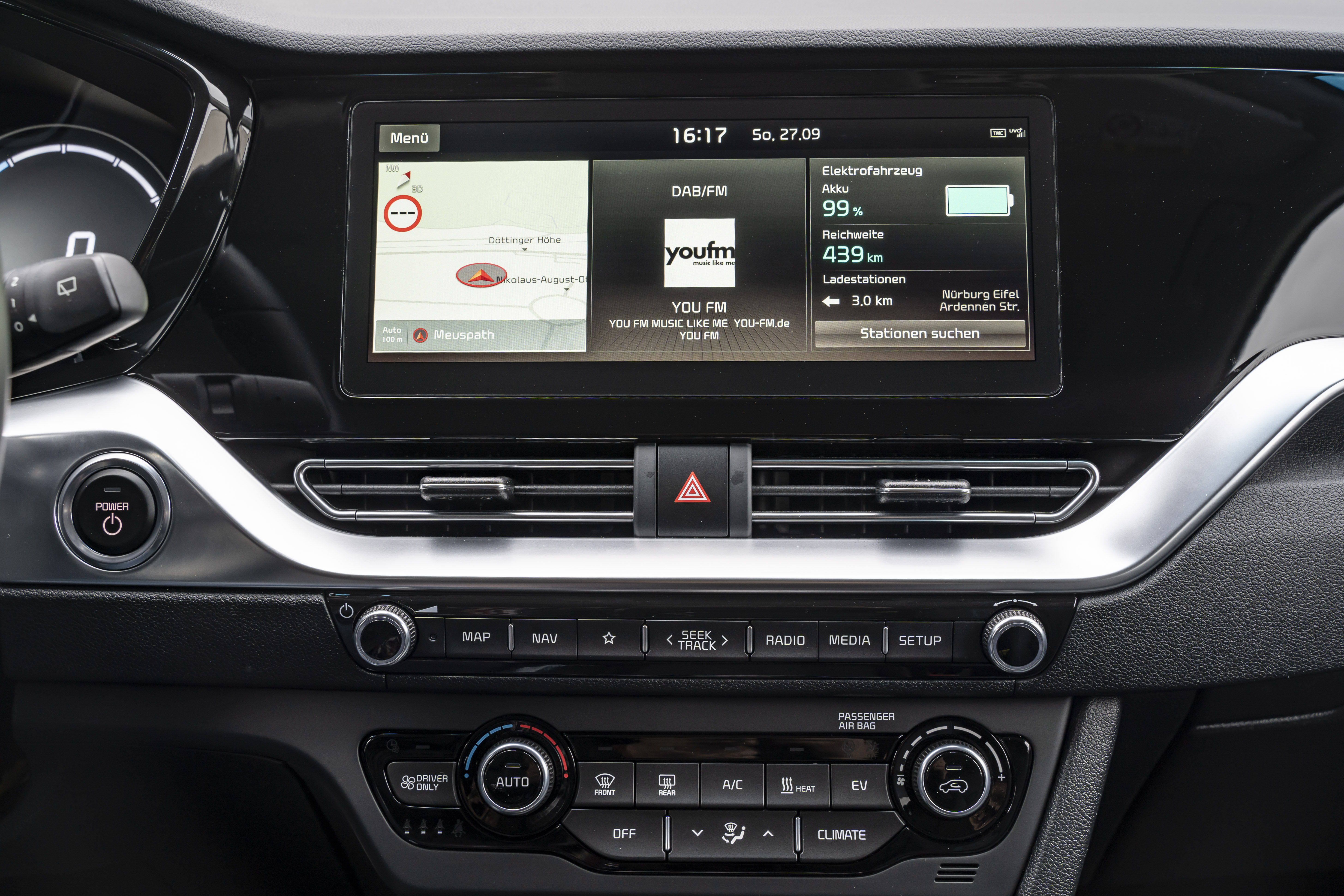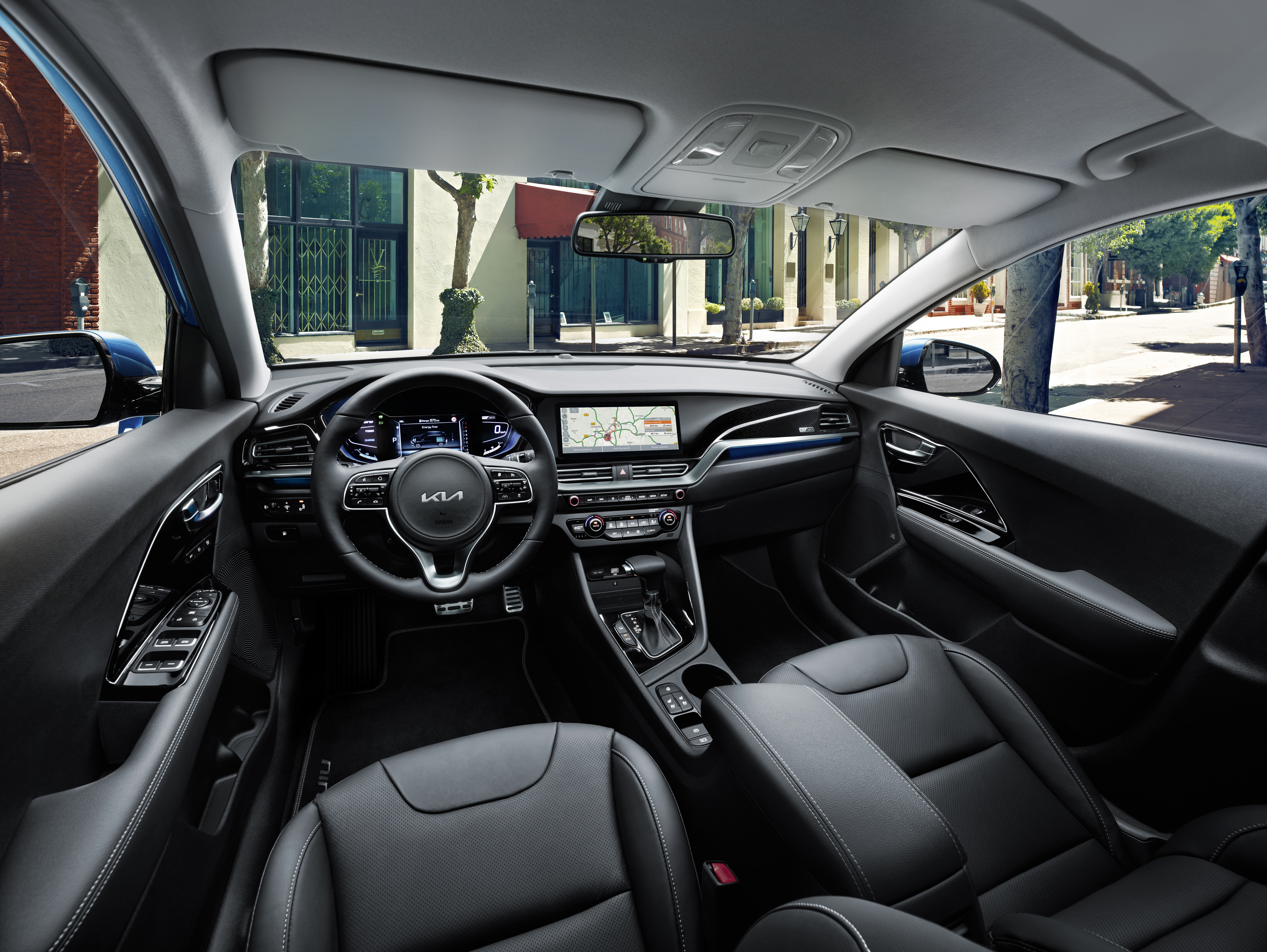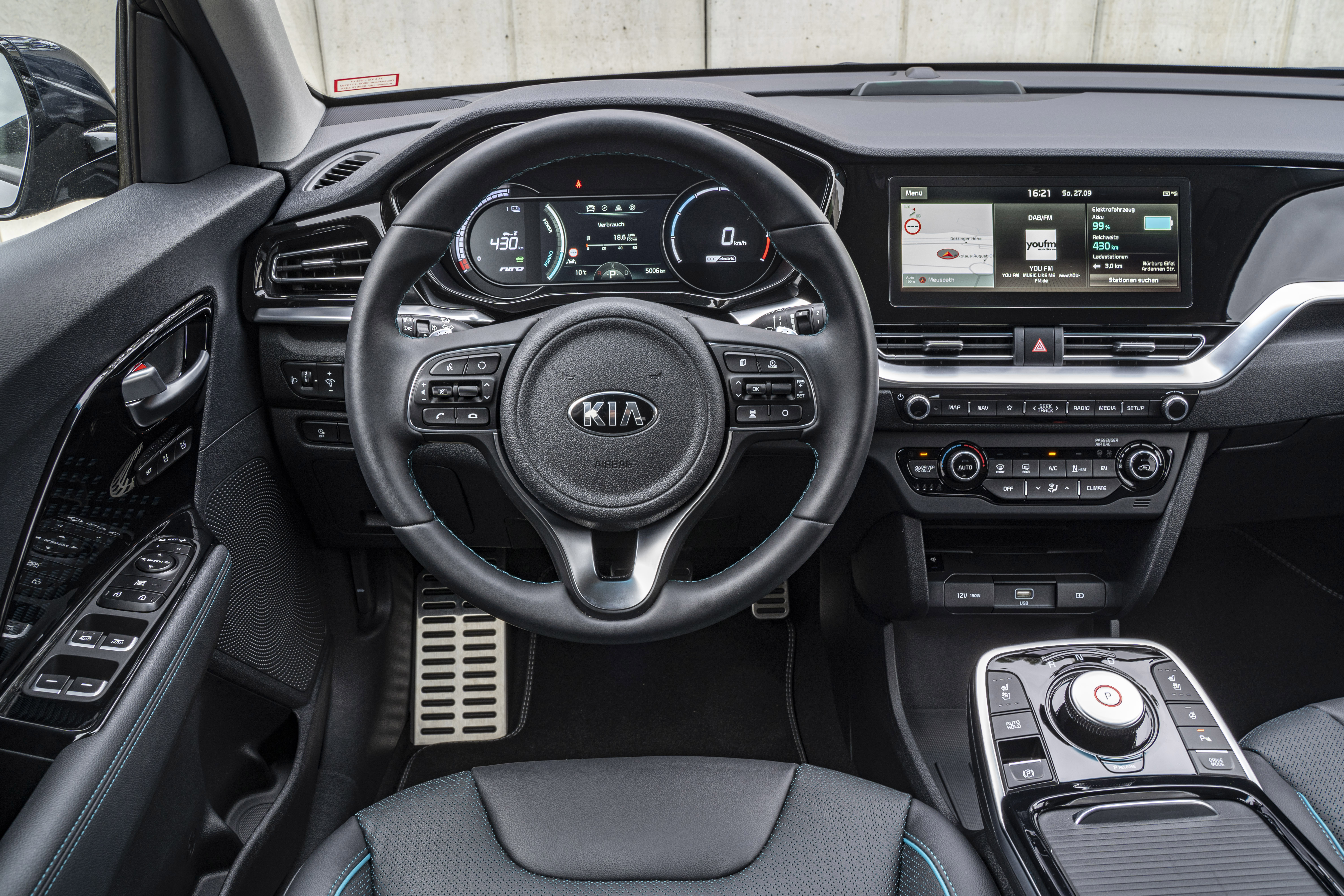 Im Innenraum verzückt der e-Niro Spirit zusätzlich mit Aluminium-Sportpedalen und einer Ambientebeleuchtung. Das Smartphone kann auf der induktiven Ladestation abgelegt werden und Musik für das JBL-Premium-Soundsystem liefern, das mit sieben Lautsprechern und Subwoofern tönt.