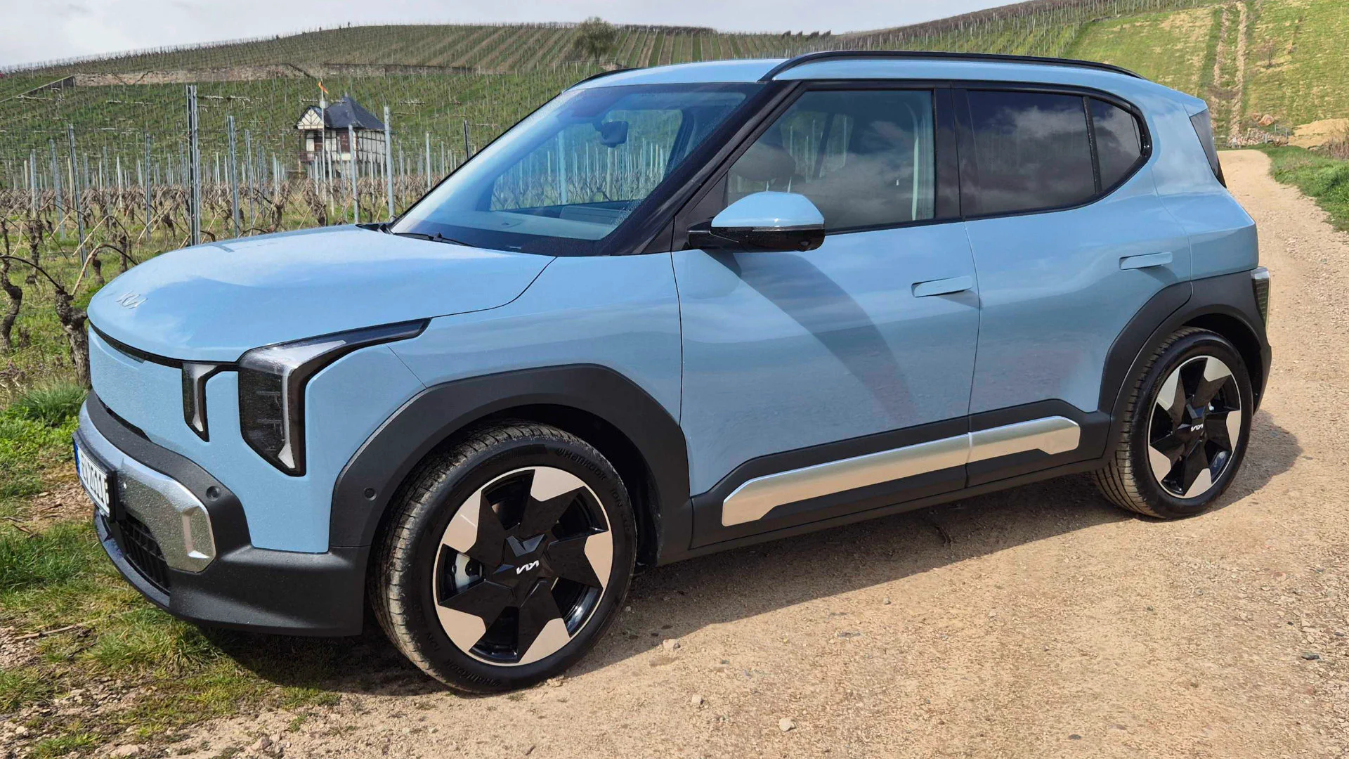 Optisch macht der kleinste KIA auf ganz groß. Durch das kantige Design, die überdurchschnittliche Breite (1,80 Meter) und die weit außen liegenden Scheinwerfer und Rückleuchten wirkt das Mini-SUV deutlich größer. Nur zur Erinnerung: 4,06 Meter misst der EV2 in der Länge - bereits ein VW T-Cross (4,13 Meter) ist länger.