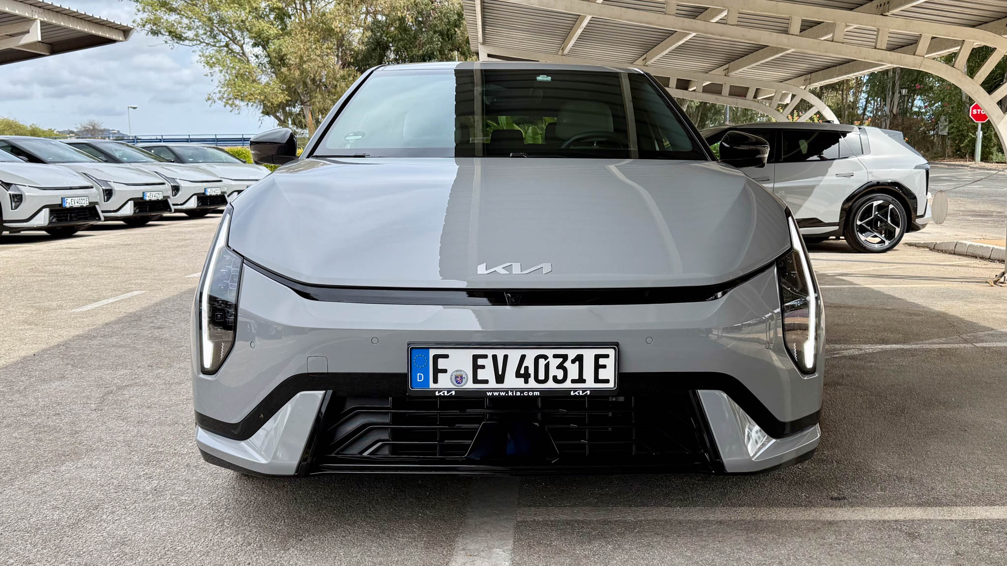 Die gute Reichweite verdankt der EV4 seiner Aerodynamik. Mit einem cw-Wert von 0,23 ist er das windschnittigste Fahrzeug, das Kia je gebaut hat. Die niedrige Karosserie und die strömungsgünstige Unterbodenverkleidung tragen zur Effizienz bei. Die Felgengröße hat ebenfalls Einfluss: Mit 17-Zoll-Rädern erreicht der EV4 die Maximalreichweite, mit 19-Zoll-Felgen sinkt sie um etwa 30 Kilometer.
