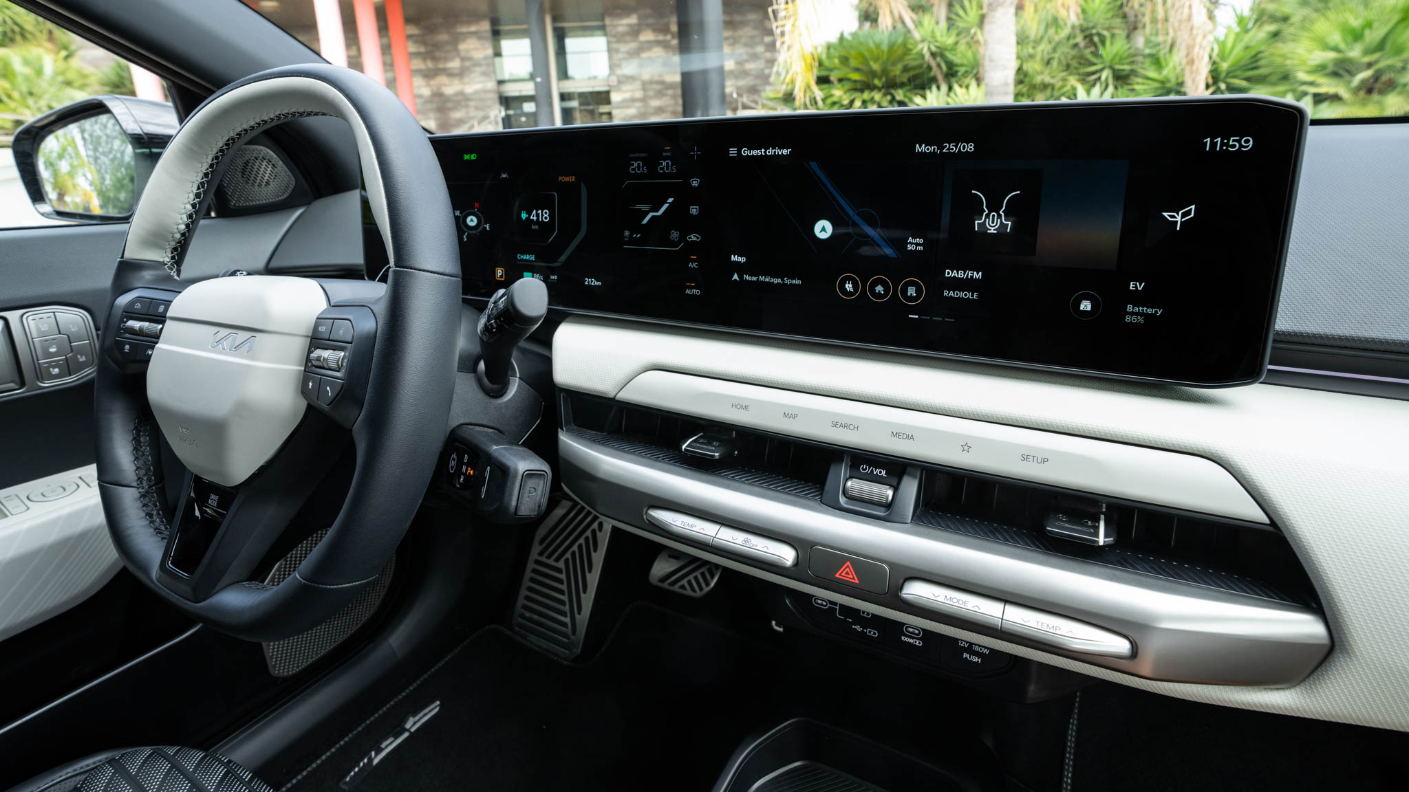 Serienmäßig ist der EV4 bereits in der Basisversion Air ordentlich ausgestattet. Dazu gehören Apple CarPlay und Android Auto (beide kabellos), digitaler Radioempfang (DAB+), eine Kia-Kartennavigation mit zwei kostenlosen Over-the-Air-Updates und ein KI-basierter Sprachassistent, der im ersten Jahr kostenlos ist.