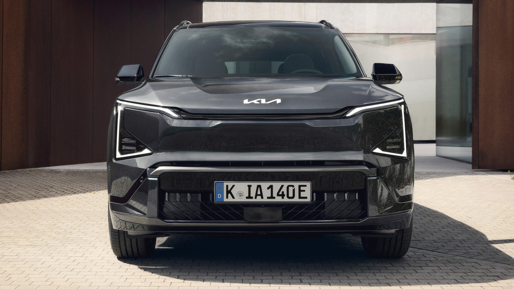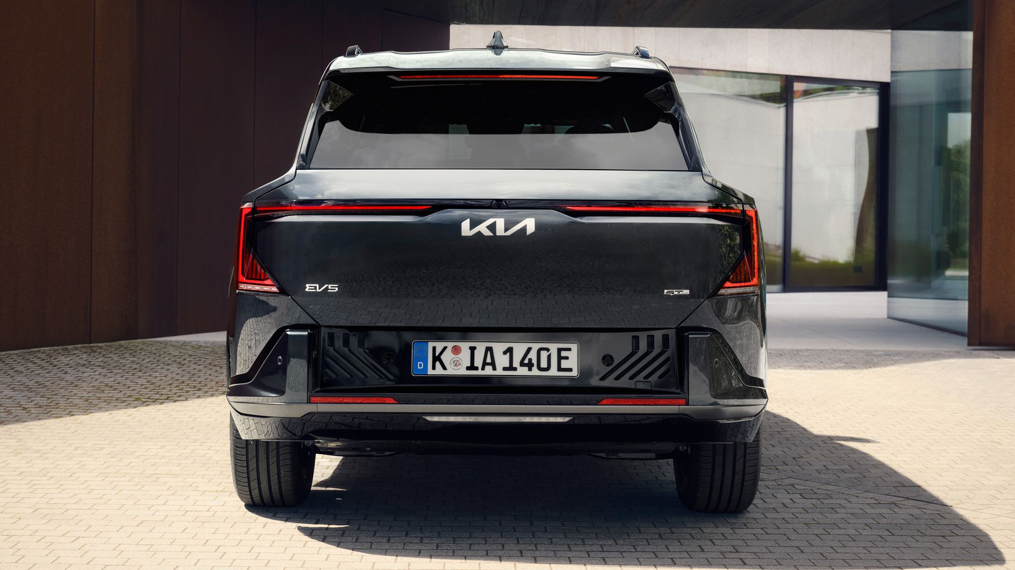Die Serienausstattung überraschte uns positiv. Schon die Basisversion Air bringt LED-Scheinwerfer, Klimaautomatik, Sitzheizung mit Massage und umfangreiche Assistenzsysteme mit. Das kastenförmige Design verleiht dem EV5 eine eigenständige Optik, auf der Straße fällt er auf. Die schmale Lichtsignatur vorne und hinten macht ihn als Kia erkennbar.
