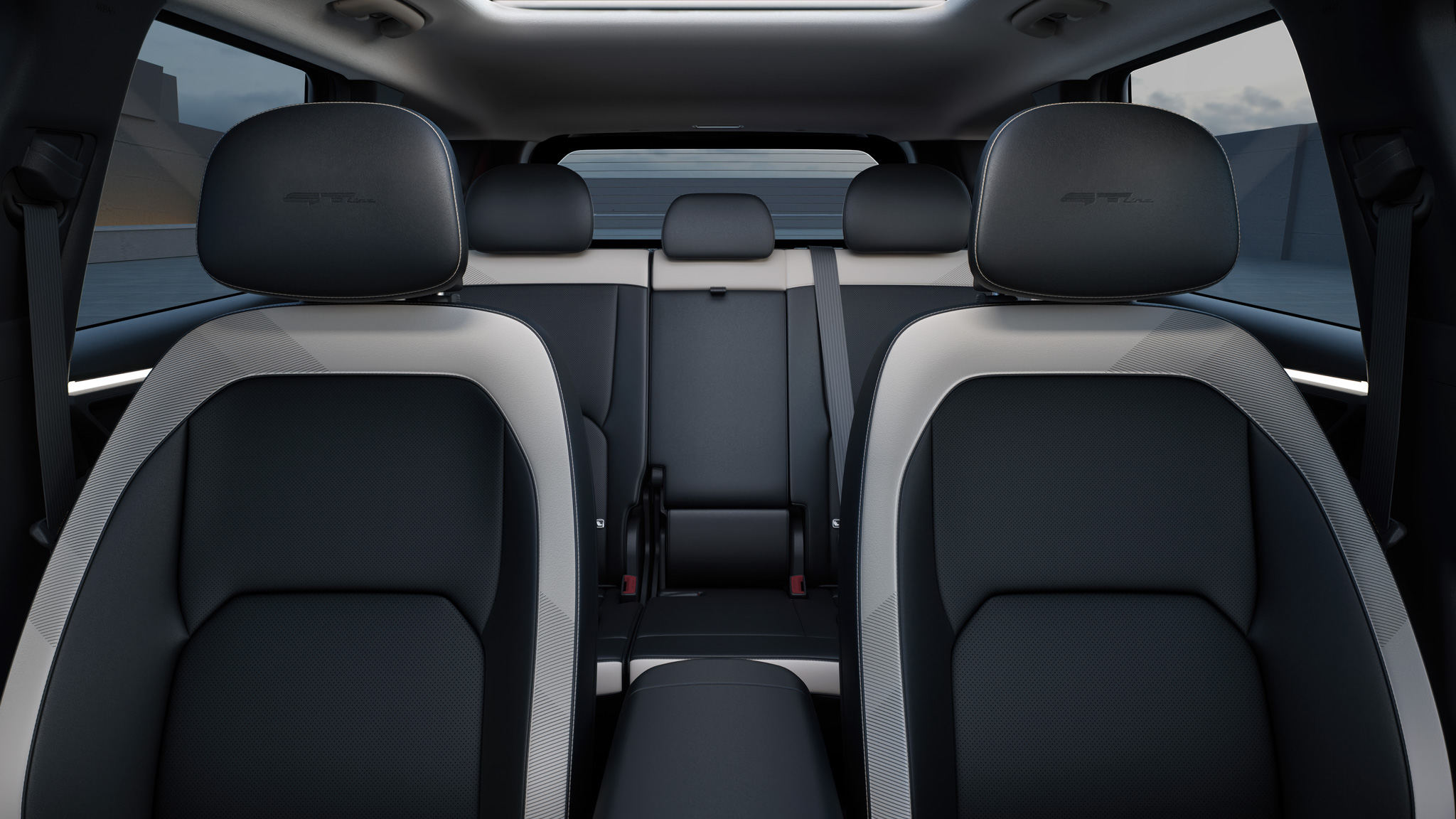 Vorne fanden wir komfortable Sitze mit guter Seitenunterstützung. Die Kopffreiheit ist großzügig, auch große Erwachsene bis 1,90 Meter finden Platz. Die Beinfreiheit überzeugte uns ebenfalls. Der Fahrersitz ist elektrisch verstellbar und bietet Lendenwirbelstütze, ab der Earth-Version gibt es sogar eine Massagefunktion. Nach mehreren Stunden Fahrt hatten wir keine Rückenschmerzen. Die Polsterung ist weder zu hart noch zu weich.