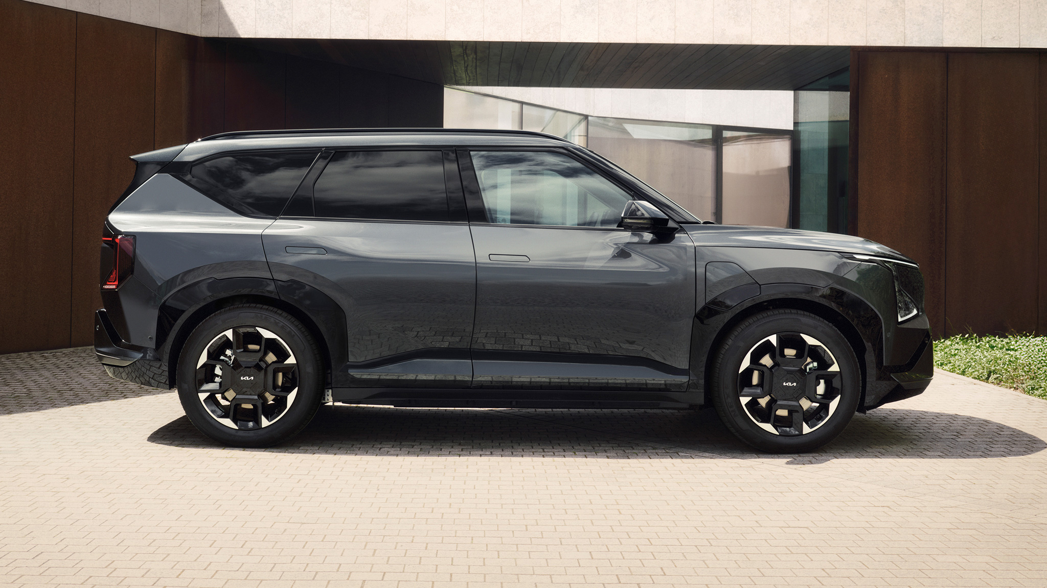 Die Batterie des Kia EV 5 fasst 81,4 Kilowattstunden netto. Damit verspricht Kia 530 Kilometer Reichweite nach WLTP in der Air-Version mit 18-Zoll-Felgen. Die Earth und GT-Line mit 19-Zoll-Bereifung kommen auf 520 beziehungsweise 505 Kilometer. Bei unseren Testfahrten erreichten wir etwa 440 bis 470 Kilometer unter realen Bedingungen. Das ist für ein Fahrzeug dieser Größe ein ordentlicher Wert.