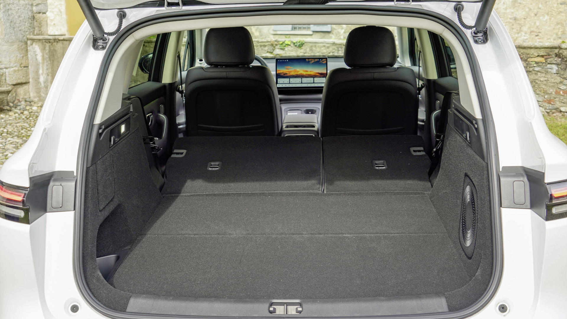 Der Kofferraum sieht aus wie eine Wanne, ohne Ecken oder Kanten. Nur an der linken Seite ist im Boden ein Fach eingelassen. Aber keine Sorge, das Ladekabel muss nicht durch den Kofferraum rutschen, es kann unter dem Boden verstaut werden. Fernentriegeln lässt sich die Rückbank leider nicht, eine Skidurchreiche fehlt ebenfalls. Dadurch, dass sich der Beifahrendensitz horizontal umlegen lässt, holt der Leapmotor C10 das Maximum an Stauraum heraus. Lange Regale aus dem Möbelhaus sind kein Problem für das SUV. Vorne unter der Motorhaube gibt es noch einen Frunk, der weiteren Stauraum zur Verfügung stellt. Perfekt, um das Ladekabel, Eiskratzer oder andere Utensilien zu verstauen.