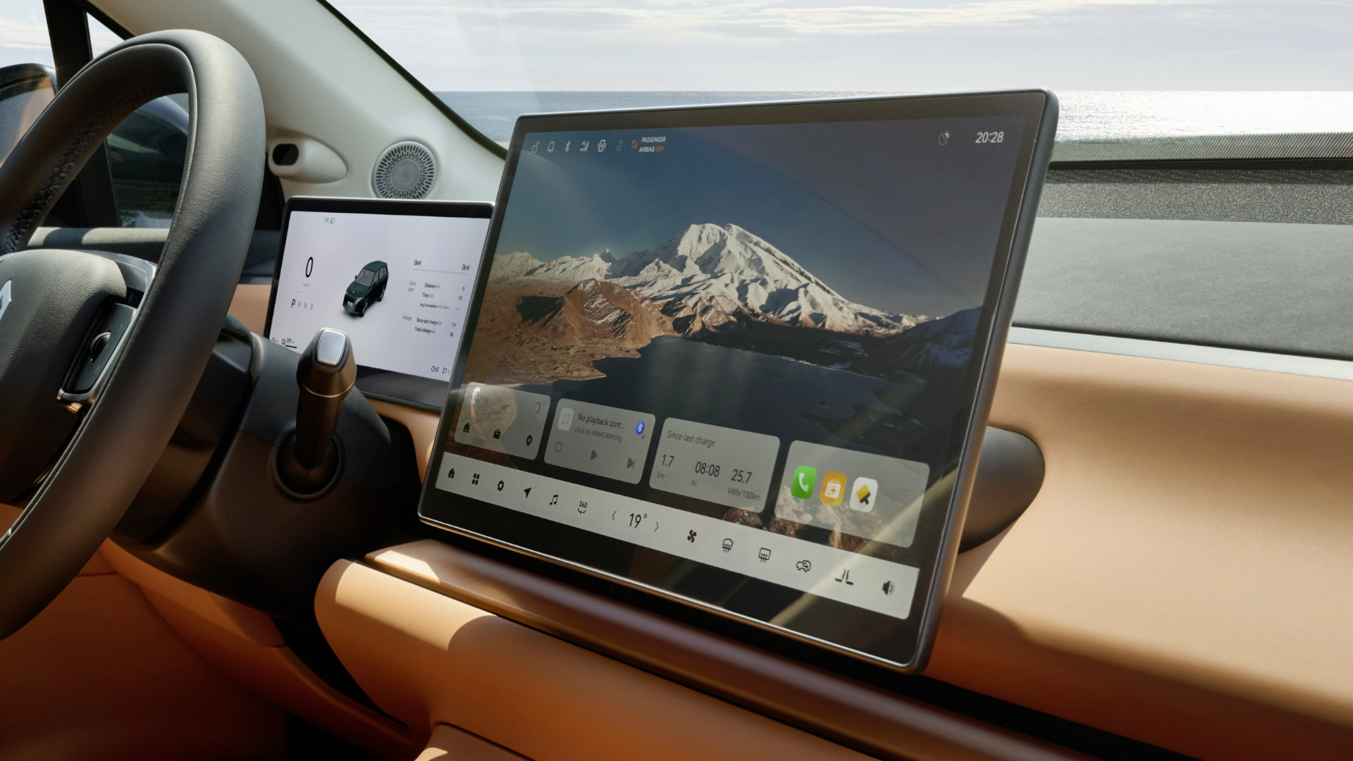 Die Steuerung im Innenraum wandert fast vollkommen in das Entertainment-System. Diese Technologie ist Geschmackssache, Leapmotor hat zumindest Blinker, Automatikhebel und Fensterheber konventionell ausgeführt. Wenngleich die Scheiben beim Druck nach unten hinauffahren und beim Ziehen nach oben herunter. Das ist auch nach einigen Tagen noch seltsam. Für alles andere kommt das Infotainment zum Einsatz - von der Klimaanlage bis zur Sitzheizung oder dem Einstellen der Seitenspiegel. Die beiden Rollen rechts und links am Lenkrad, die verschiedene Funktionen übernehmen können, scheinen ebenfalls von Tesla inspiriert. Hinter dem Lenkrad ist ein 10,25 Zoll großer Bildschirm angebracht, auf der Armatur ein 14,6 Zoll HD-Display. Das Infotainment reagiert sehr schnell und ist übersichtlich strukturiert. Beim Wischen, Vergrößern und Verkleinern ruckelt nichts.