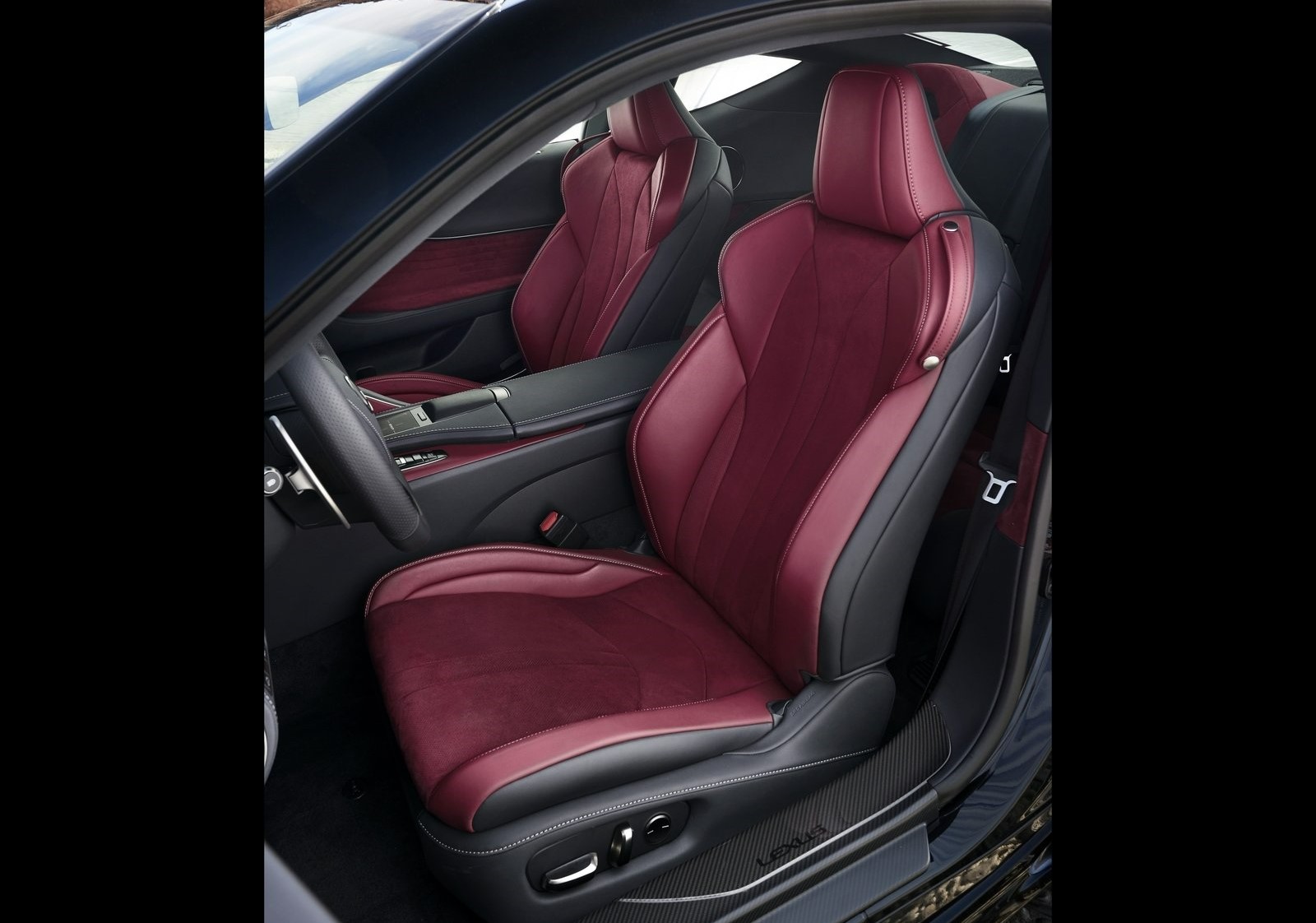 Der Innenraum des Lexus LC ist luxuriös und modern gestaltet. Hochwertige Materialien, wie Leder und Aluminium, sorgen für ein angenehmes Ambiente. Speziell die Vordersitze bieten einen guten Halt.