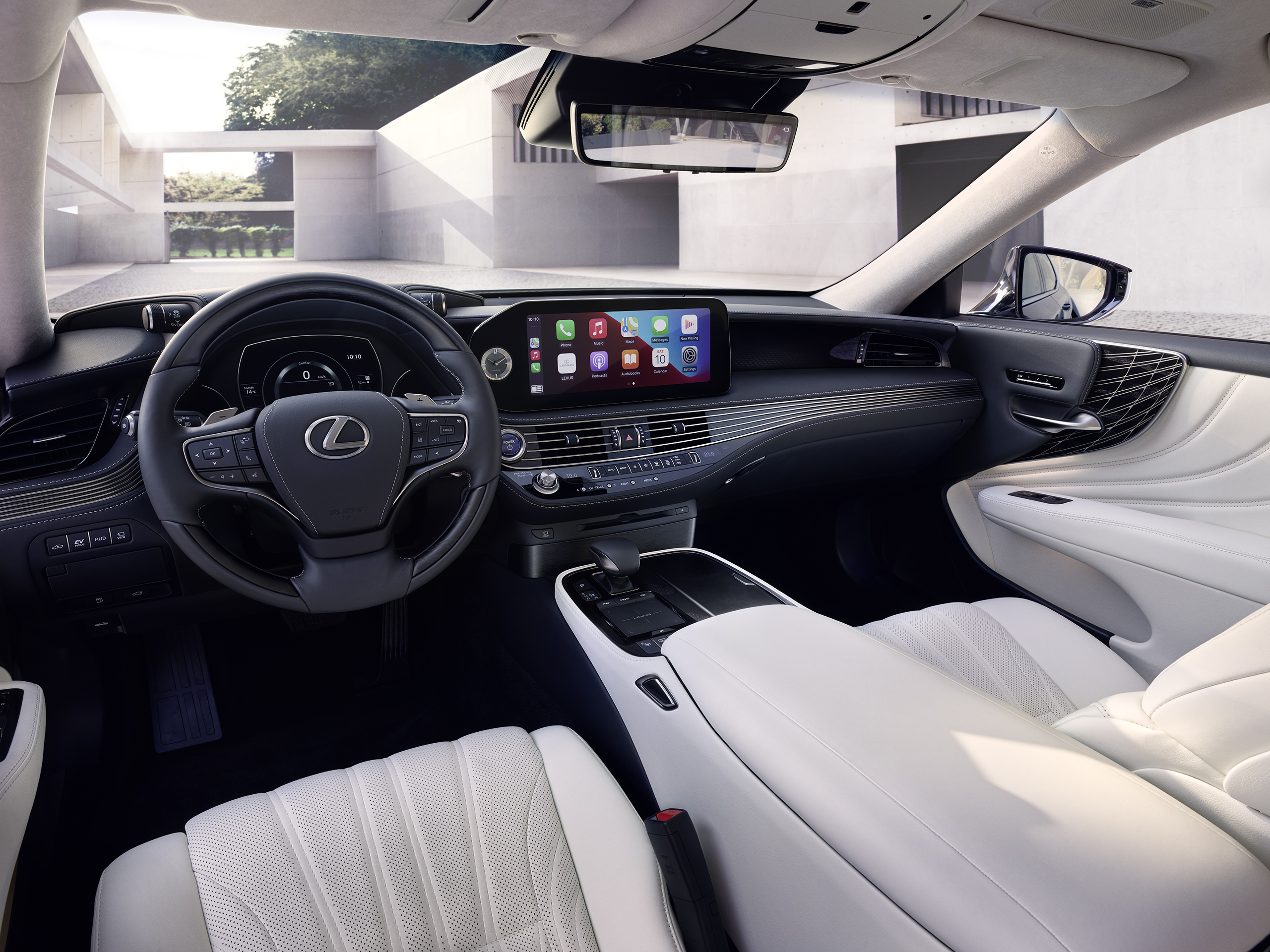 Der F Sport kommt mit 20-Zoll-Leichtmetallfelgen, klimatisierten Ledersitzen im F Sport-Design, einem beheizbaren Lederlenkrad, dem Mark Levinson Premium-Sound-System und dem Premium-Navigationssystem.