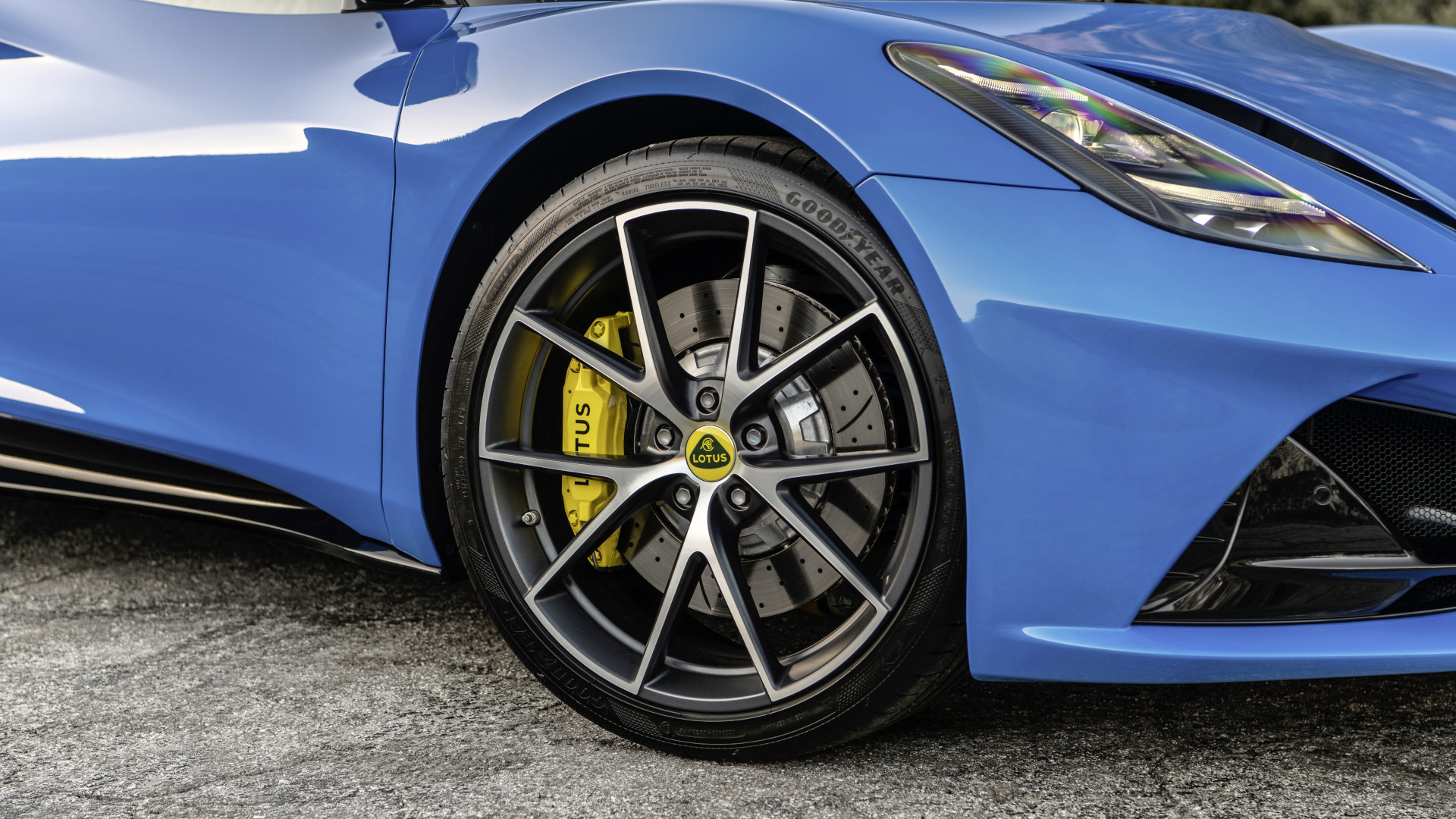 Den Lotus Emira erhält man mit dem weicheren Tour-Fahrwerk oder dem härteren Sportfahrwerk mit strafferen Federn und Michelin Pilot Sport Cup 2 Semi-Slicks statt der Goodyear Eagle F1 Supersport-Reifen im 20-Zoll-Format.
