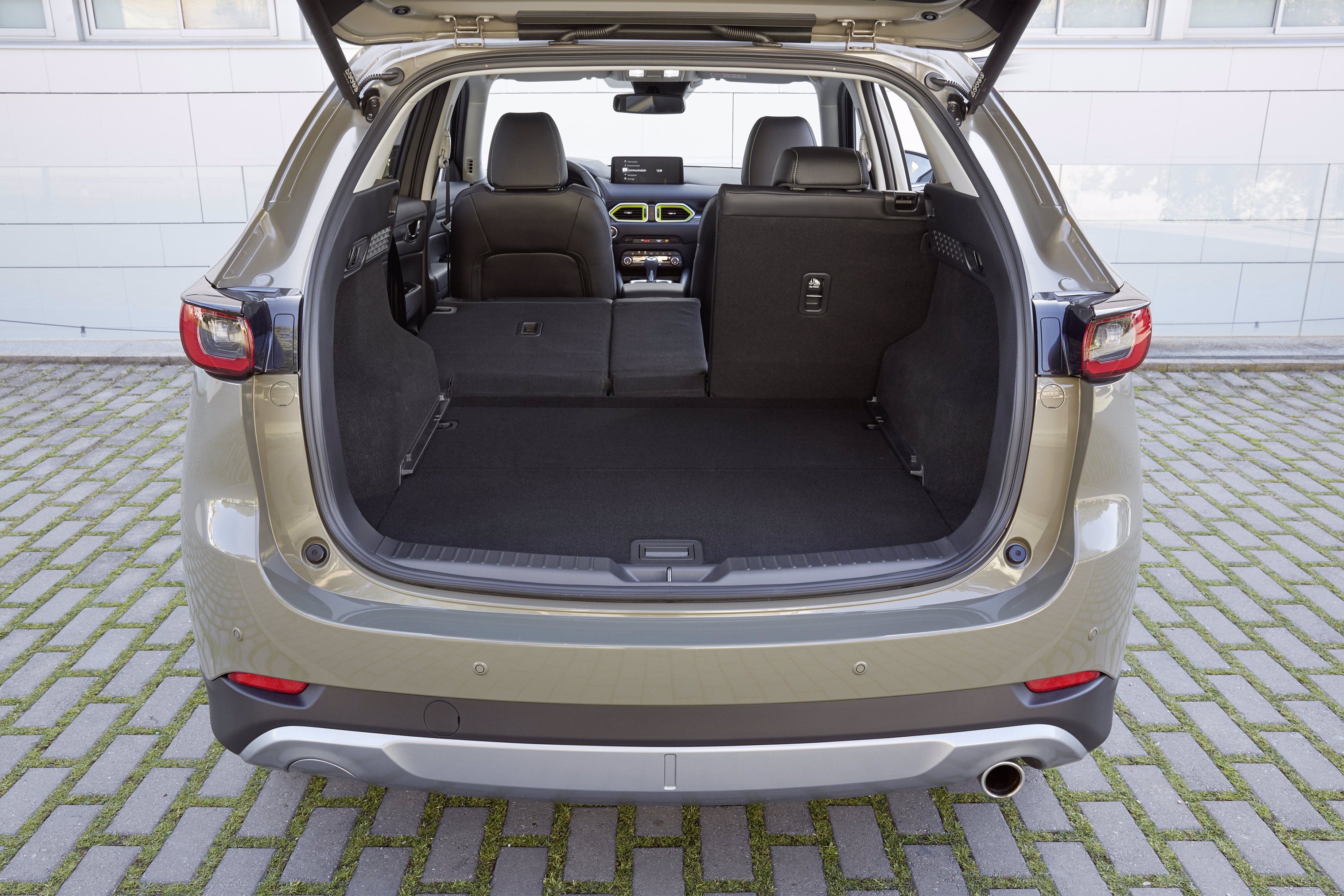Werden die Rückbanklehnen ganz flach gelegt, geizt der CX-5 nicht mit Platz. Dann darf im Heckbereich bei einem Volumen von 1.620 Liter gut eingepackt werden. Ist man fünfsitzig unterwegs, reicht der Platz unter der im Sports-Line serienmäßigen, etwas langsam arbeitenden elektrischen Heckklappe für 506 Liter Gepäck.