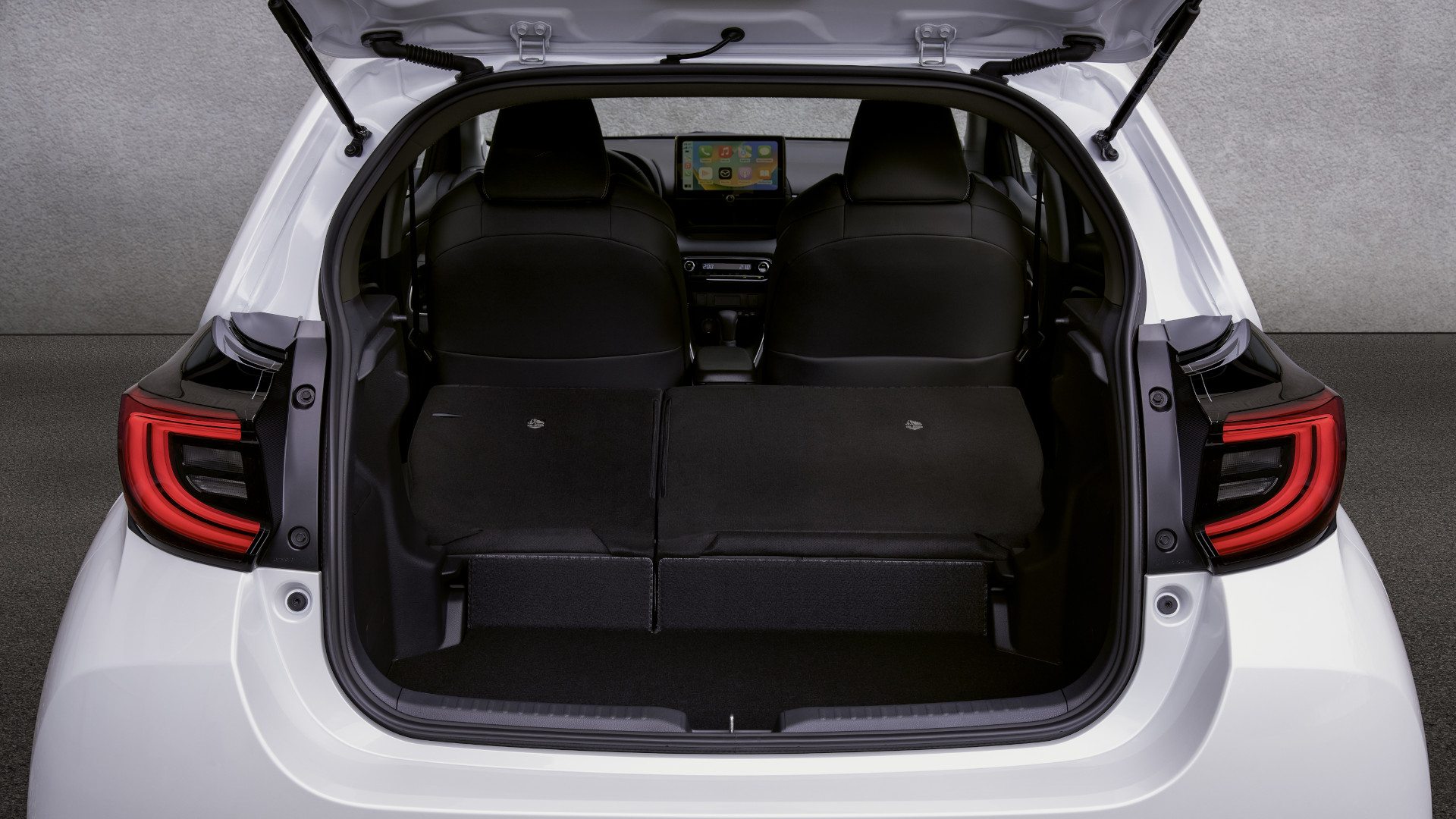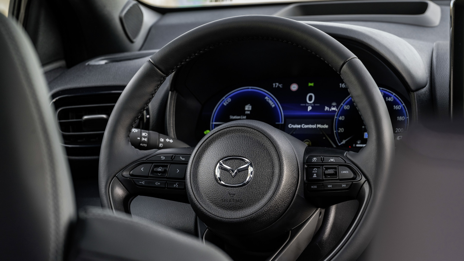 Im direkten Vergleich mit dem Yaris Hybrid liefert er sich von den Dimensionen den Patt und gegenüber den Hybrid-Konkurrenten von Honda und Renault fällt er etwas kompakter aus. Die sind knapp über vier Meter lang. Der Mazda bleibt mit 3,94 Meter Länge knapp unter vier Meter.