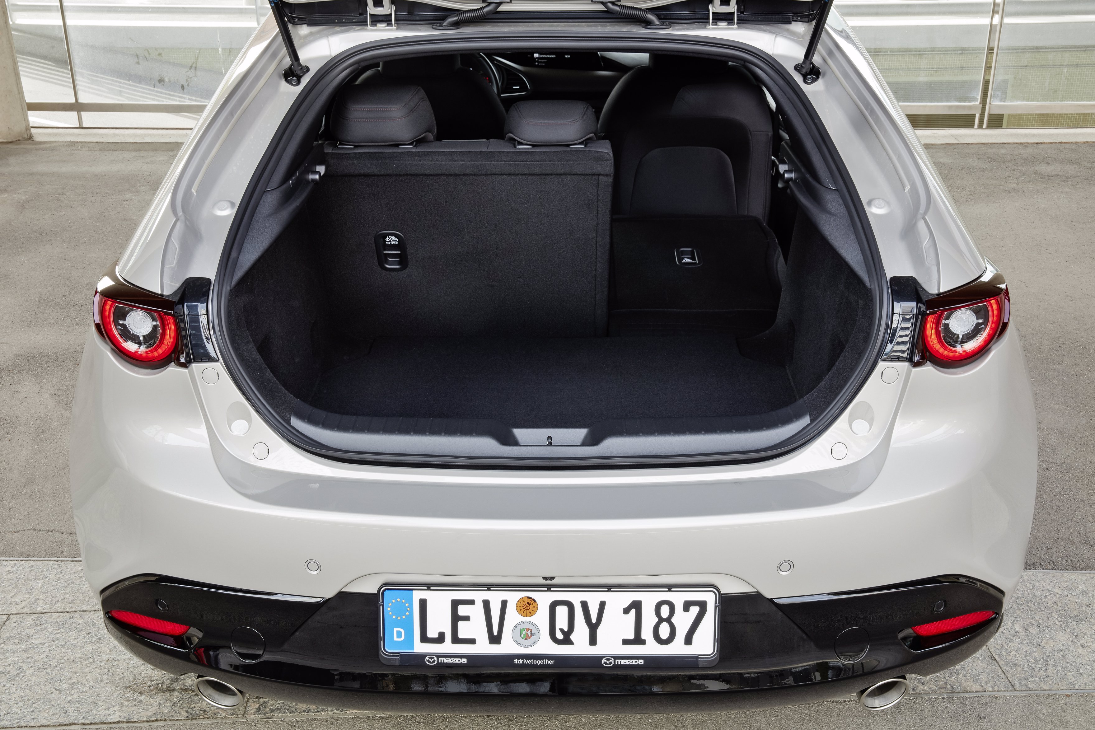 Die schicke Tiefe ist auch im Kofferraum kein Vorteil. Die Ladekante verläuft hoch und dahinter geht es tief hinab in den Gepäckraum, der nicht klein, aber mit 351 Liter trotzdem unterdurchschnittlich voluminös ausfällt. Ein Vergleich verdeutlicht das am Besten: Ein VW Golf ist zwanzig Zentimeter kürzer als der neue Mazda3, aber er bringt 380 Liter im Gepäckabteil unter.