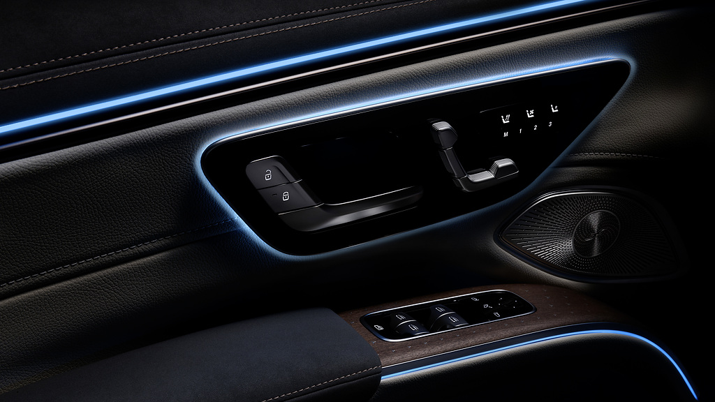 Neben der Luftfederung tragen serienmäßig auch die Vierlenker-Achse vorne und die Raumlenkerachse hinten zum Fahrkomfort bei. Die Allradlenkung, die sich sogar upgraden lässt, tut ihr Übriges. Im EQS SUV ist Relaxen angesagt.