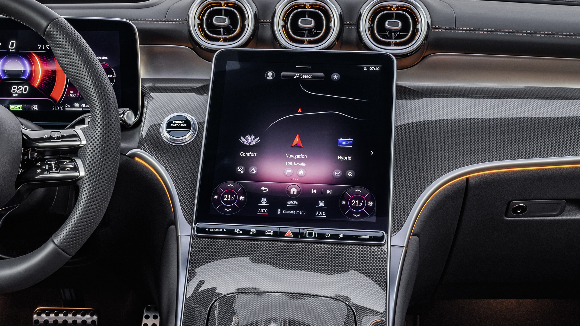 Das dynamisch gezeichnete Digitalcockpit präsentiert sich mit zwei „frei stehenden“ Bildschirmen und hochwertiger Verarbeitung puristisch-edel. Das MBUX-Infotainment zählt auch in seiner neuesten Generation wieder zu den überzeugendsten Infotainmentsystemen auf dem Markt. Mit aufgeräumter Bedienstruktur, großen Touchscreen-Bedienflächen und exzellenter Sprachsteuerung.
