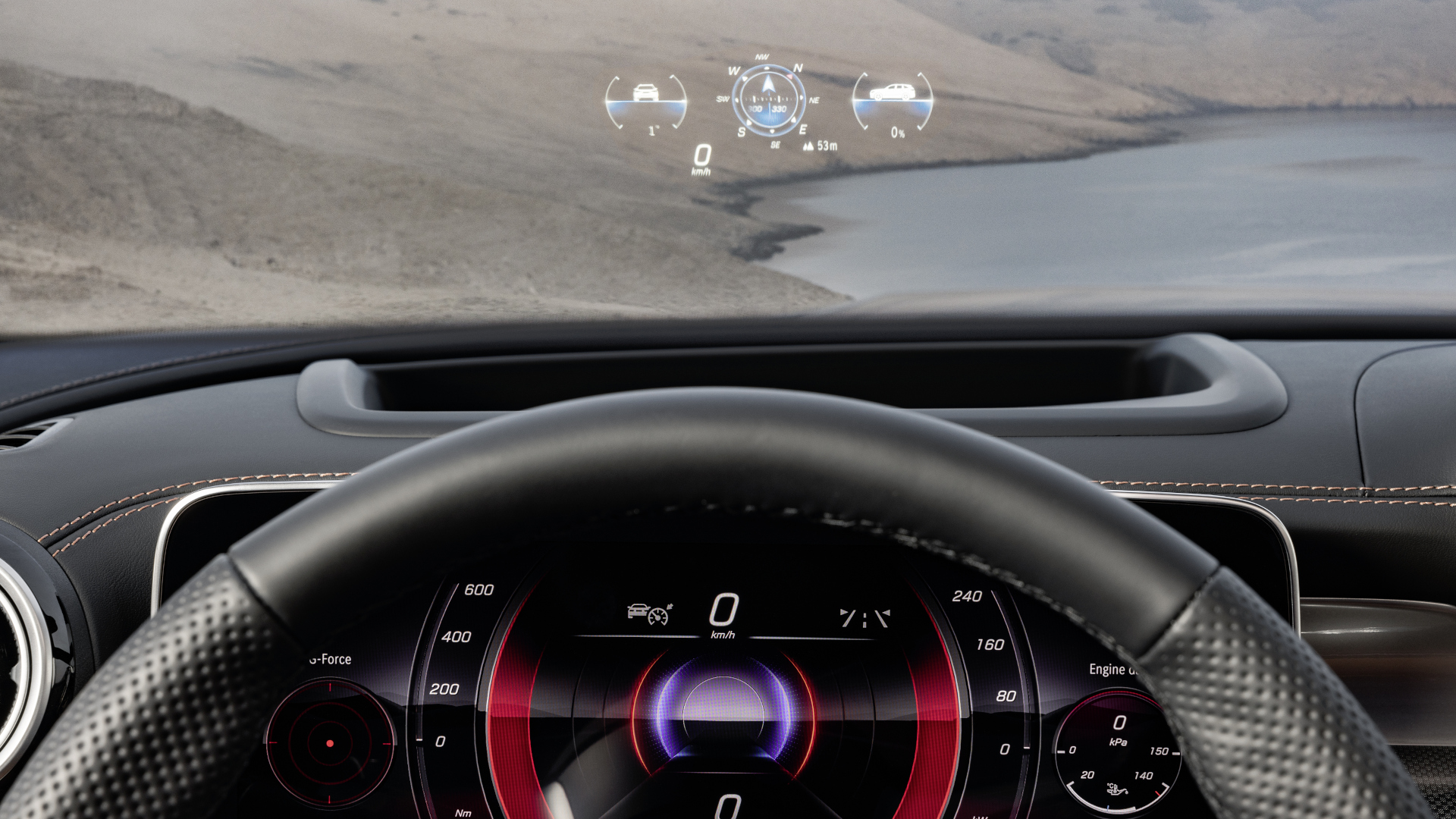 Das vielfältig anpassbare Cockpit, das volldigital anzeigt, misst 12,3 Zoll in der Bildschirmdiagonale und der leicht zum Fahrerplatz geneigte Mittelbildschirm 11,9 Zoll. Das über diesen gesteuerte MBUX Infotainment der neuesten Generation gefällt mit großen Bedienfeldern und wohl aufgeräumter Bedienstruktur. Wer Direkttasten unterhalb des Bildschirms sucht, findet keine. Nicht so schlimm.