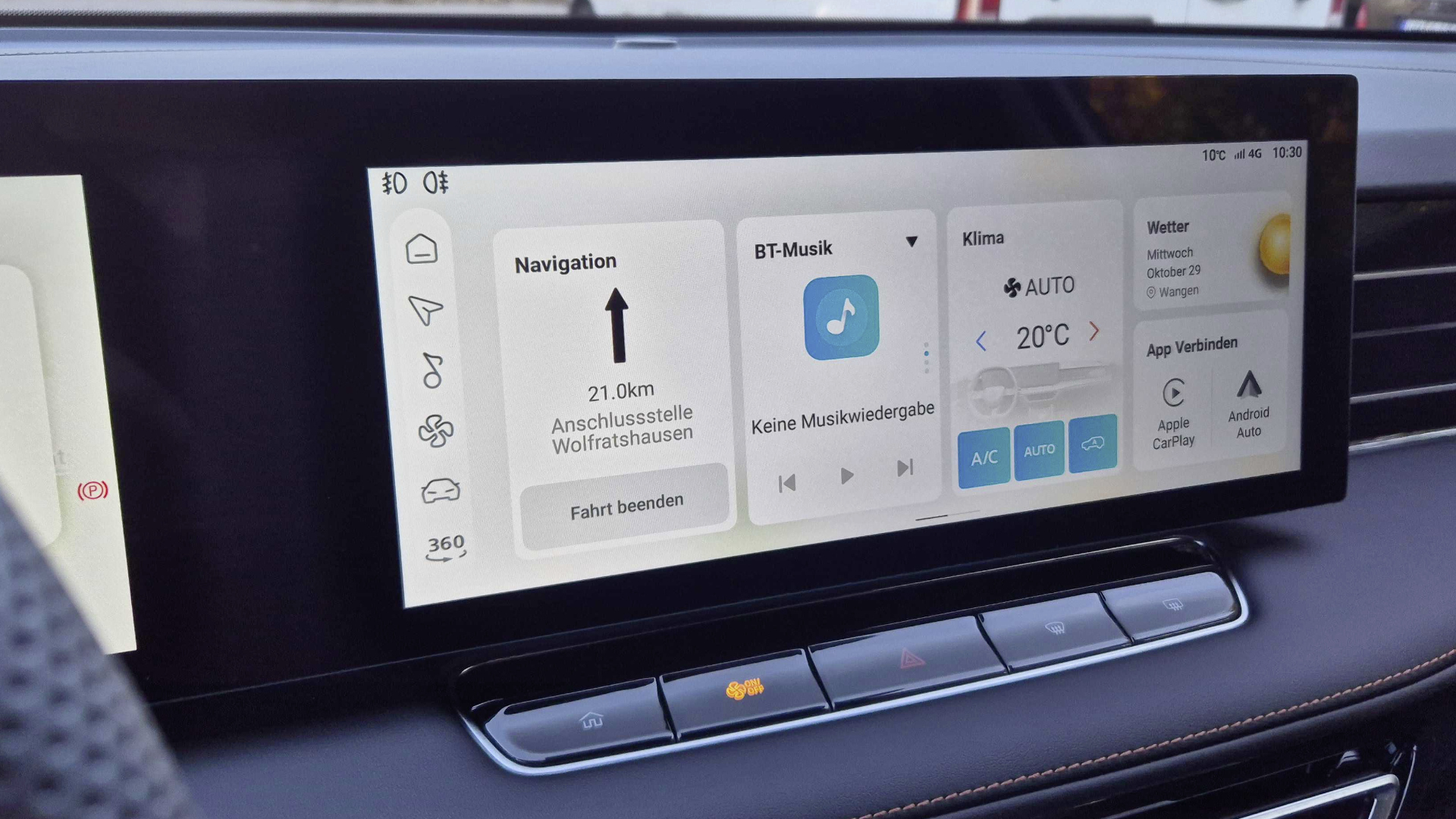 Die Funktionalität bleibt im Cockpit und Interieur auch sonst nicht auf der Strecke. Neben den digitalen Wegen auf dem Screen existieren auch weiterhin altbekannte Schalter und Tasten. Das Infotainment der Luxury-Variante lässt sich per Sprachsteuerung steuern. Die Bedienung stellt nicht vor Rätsel und biegt nur manchmal falsch ab. Ein Drehschalter für die Lautstärkeverstellung findet sich im Cockpit nicht. Die Lautstärke lässt sich allein über die Tasten am Lenkrad verstellen.