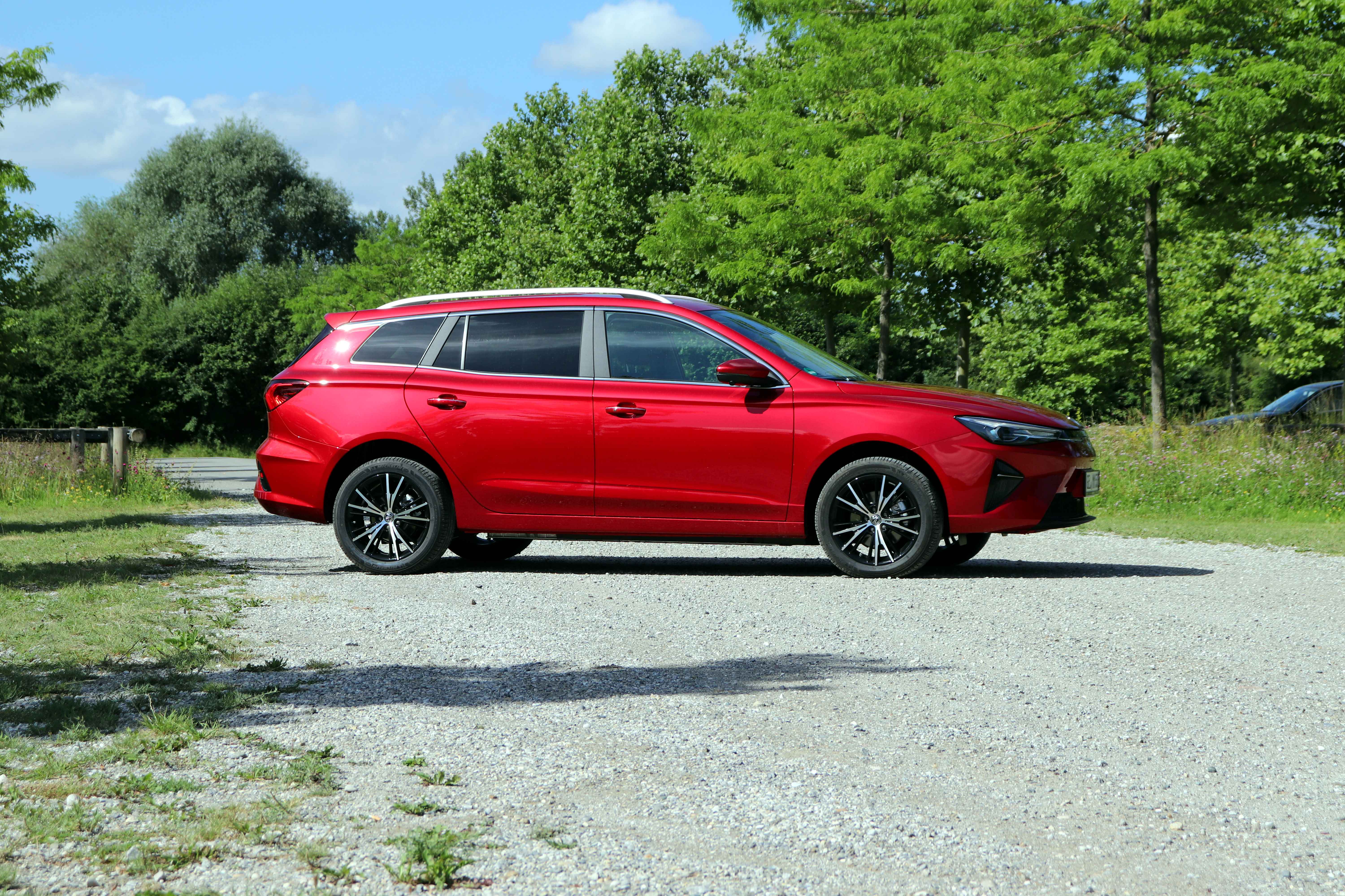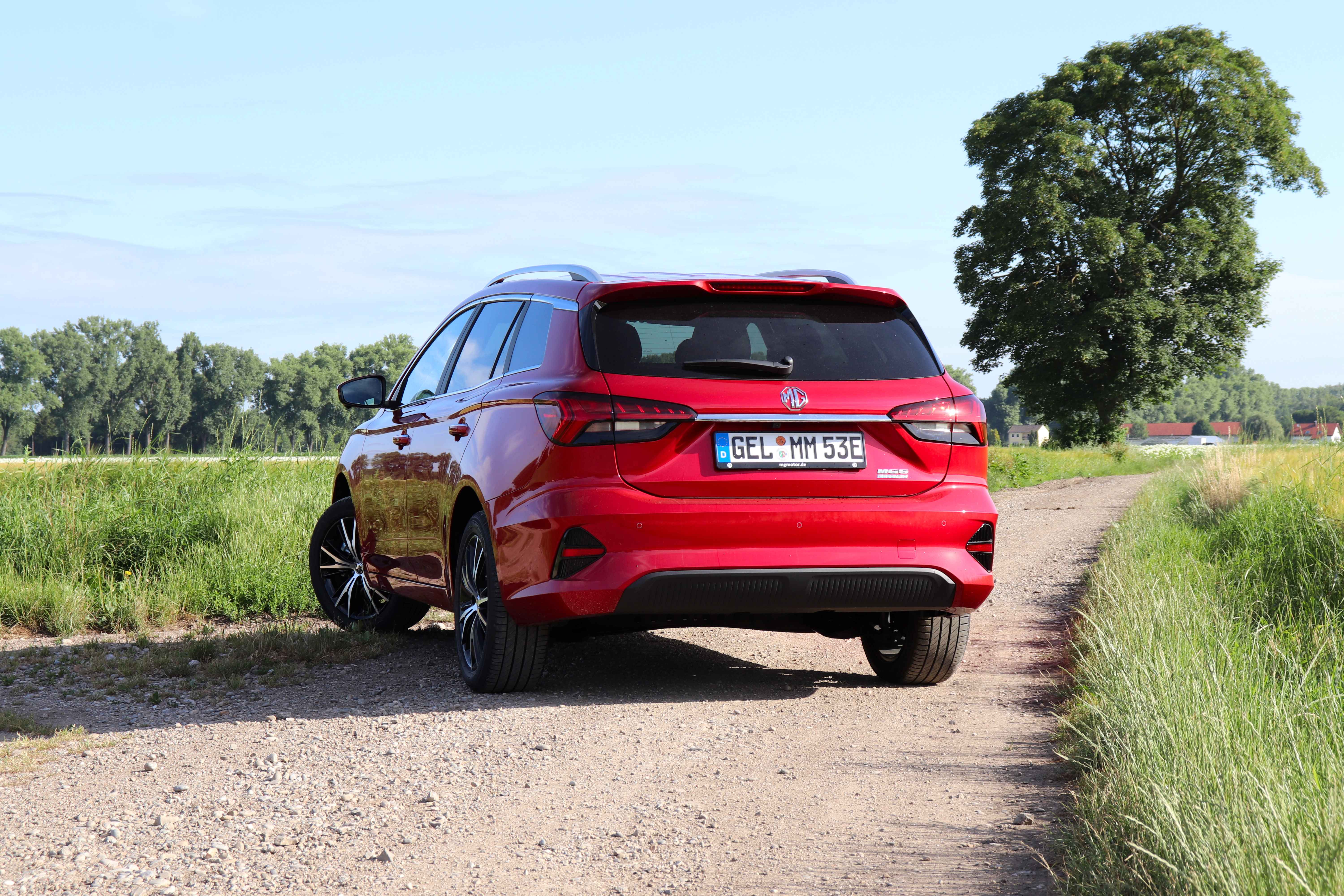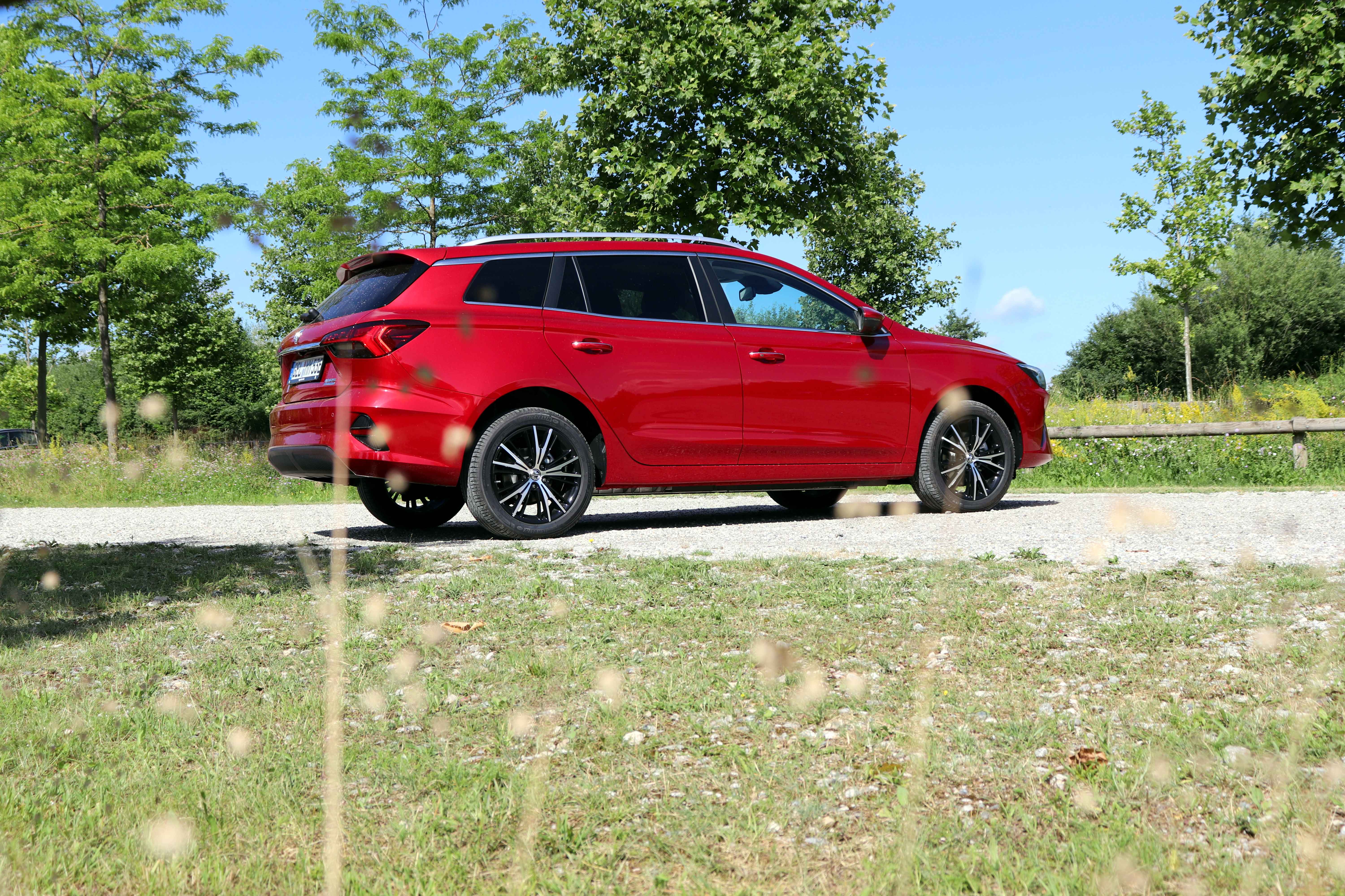 Auf der Straße liegt der MG5 ebenso satt ganz unabhängig vom Untergrund. Obwohl der Kombi kein SUV und erst recht kein Geländewagen ist, meistert er auch unebene Schotterstraßen problemlos. Denn im Profil fällt die erstaunlich große Bodenfreiheit auf, die den Kombi leicht aufgebockt wirken lässt und an geländetaugliche Alternativen wie den VW Golf Alltrack erinnert - nur ohne Plastikbeplankung.