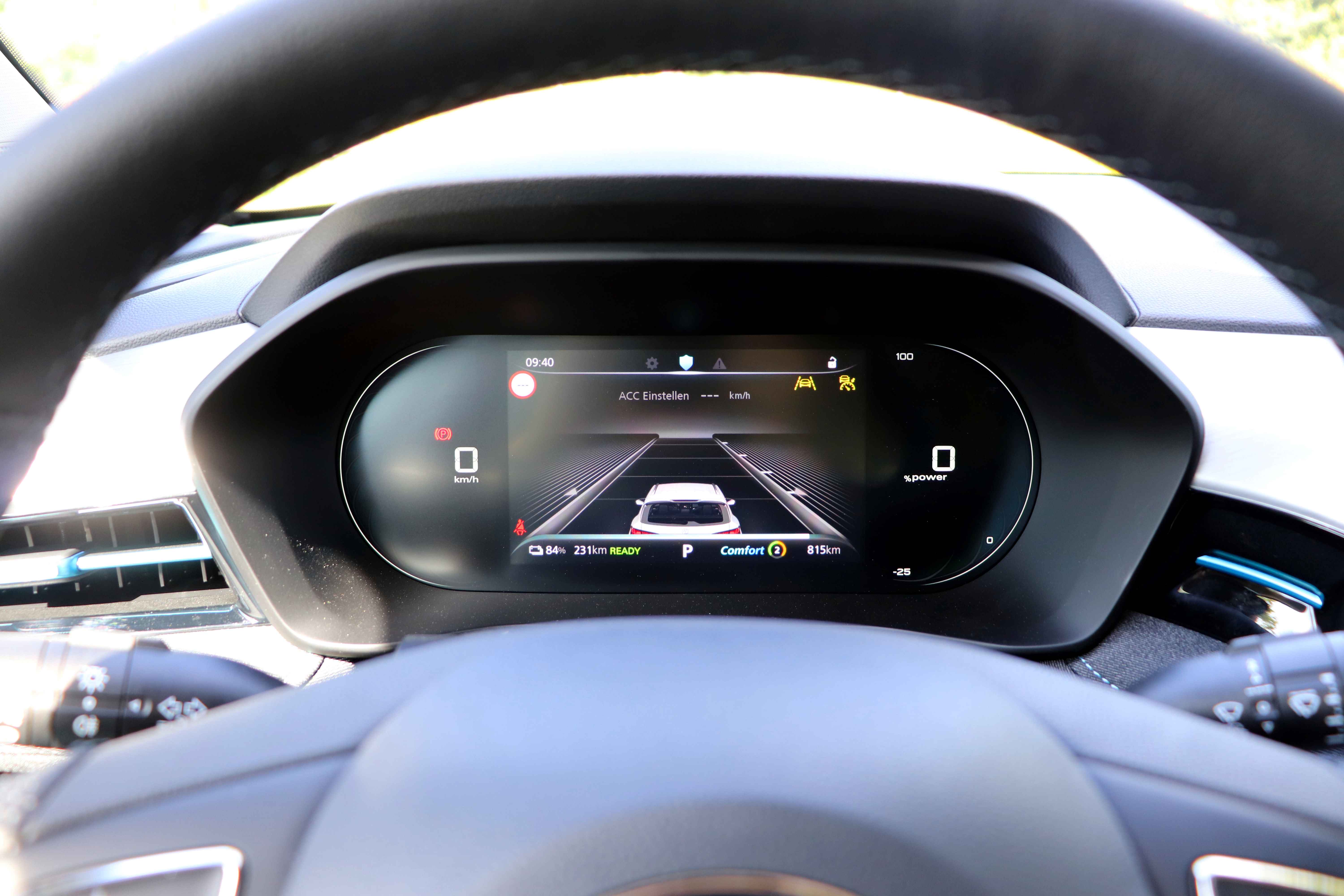 Der Spurhalteassistent funktioniert im Test auf der Autobahn gut, verliert auf Landstraßen und im Stadtverkehr jedoch öfter die Linienführung oder bleibt nicht mittig in der Spur, sondern fährt Kurven am Scheitelpunkt nah zur inneren Fahrbahnmarkierung. Dazu erhalten wir mehrfach die Warnung, die Hände am Lenkrad zu behalten, weil das Fahrzeug hierbei offenbar sehr präzise Punkte voraussetzt oder mehr Druck erfordert. Ein leichtes Auflegen der Hände am Lenkradkranz reicht nicht.