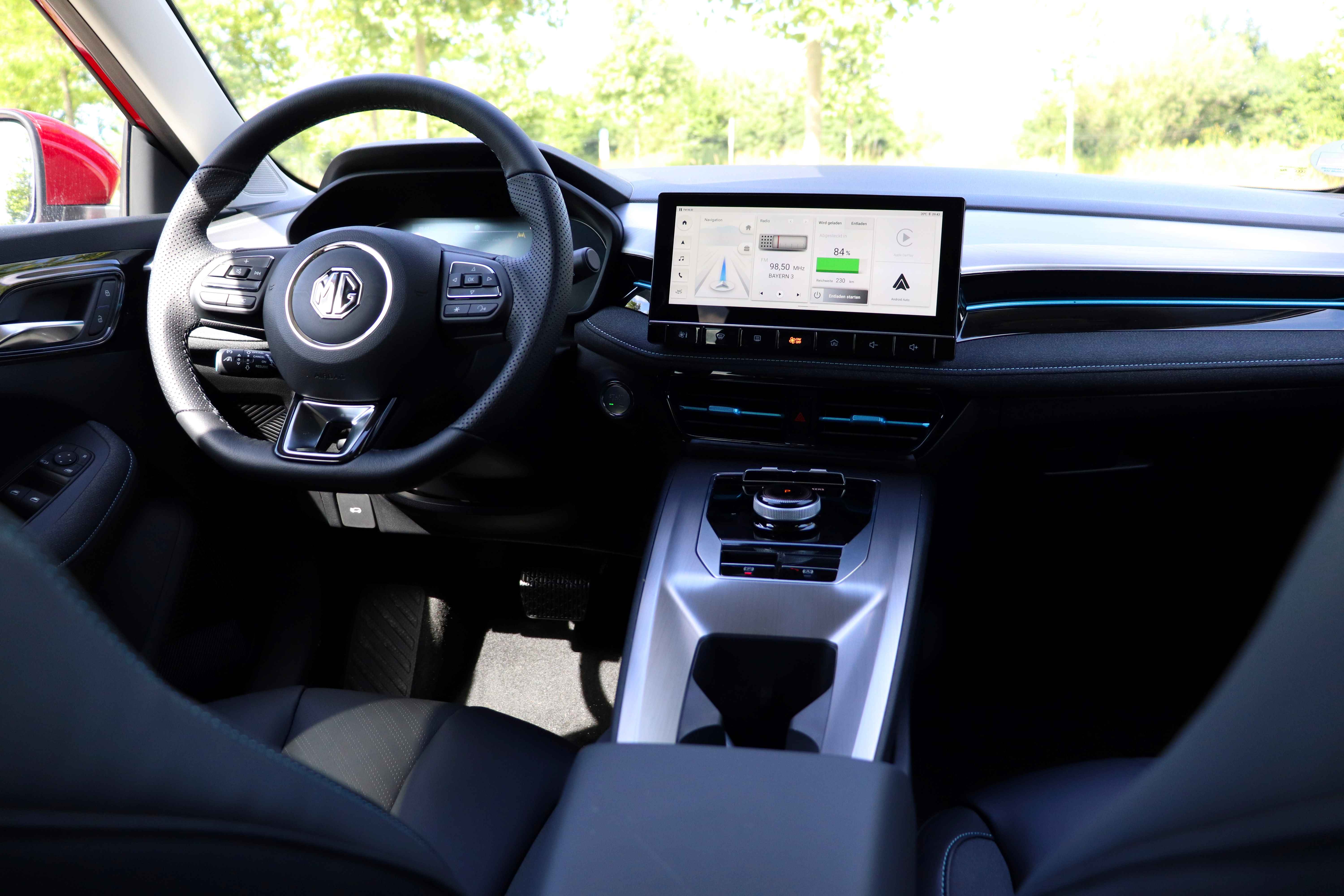 Im Innenraum ist dem MG5 das Preissegment keineswegs anzusehen. Selbst günstigere Materialien sehen optisch hervorragend aus und sind erstklassig verarbeitet. Alle Flächen, die potentiell mit den Händen in Berührung kommen, sind unterschäumt und fassen sich wertig an.