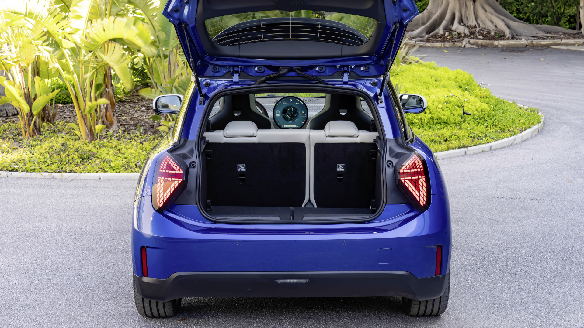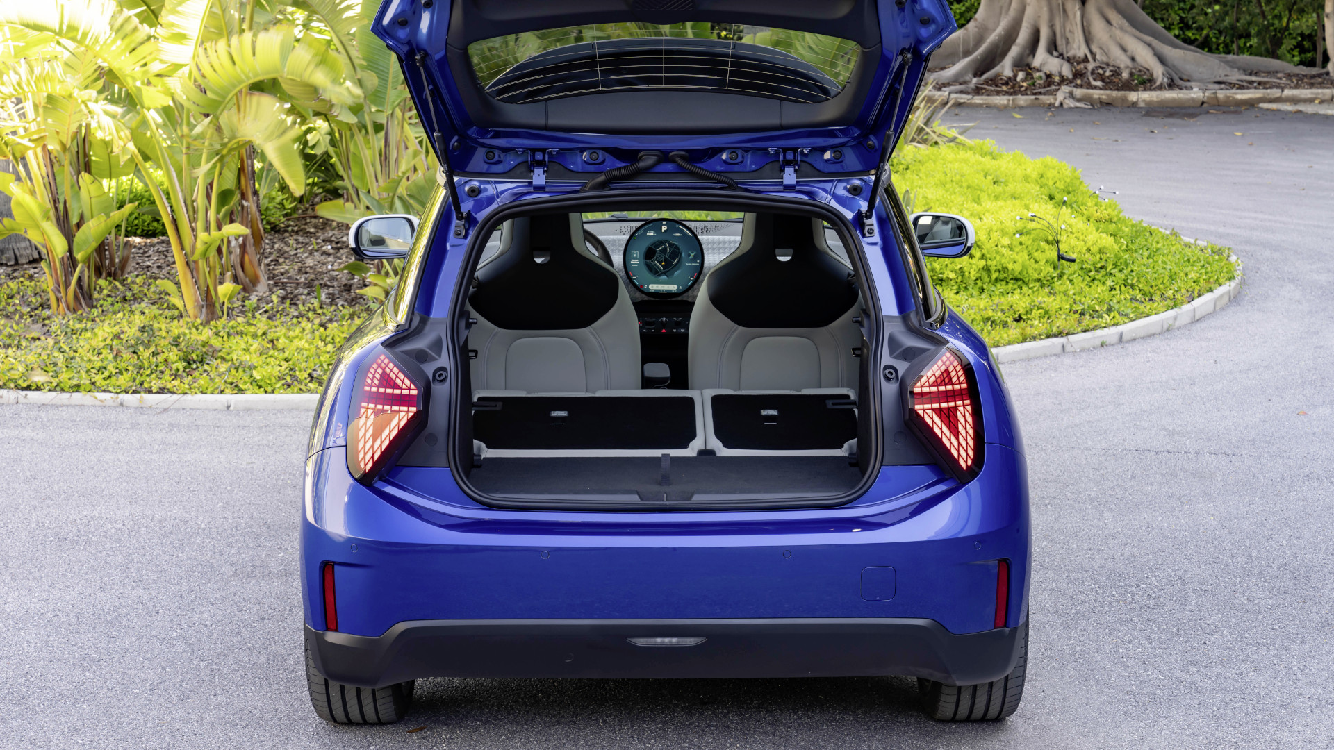 Das Raumangebot ähnelt, obwohl der Cooper Electric in Länge, Breite und Höhe zugelegt hat, fast dem alten: zwei Türen, vier Sitzplätze, kompakter Kofferraum. Vorne sitzt man im 3-türigen 4-Sitzer auf den breiter gewordenen Sportsitzen bequem, hinten als großer Erwachsener nicht. Die Kofferraumkapazität hält mit 210 Liter das Niveau des Vorgängers.